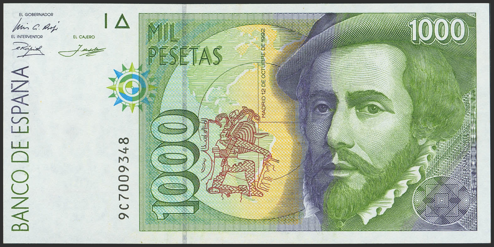 1000 Pesetas. October 12, 1992. Special Series 9C. (Edifil 2023: 483d). EF+++.