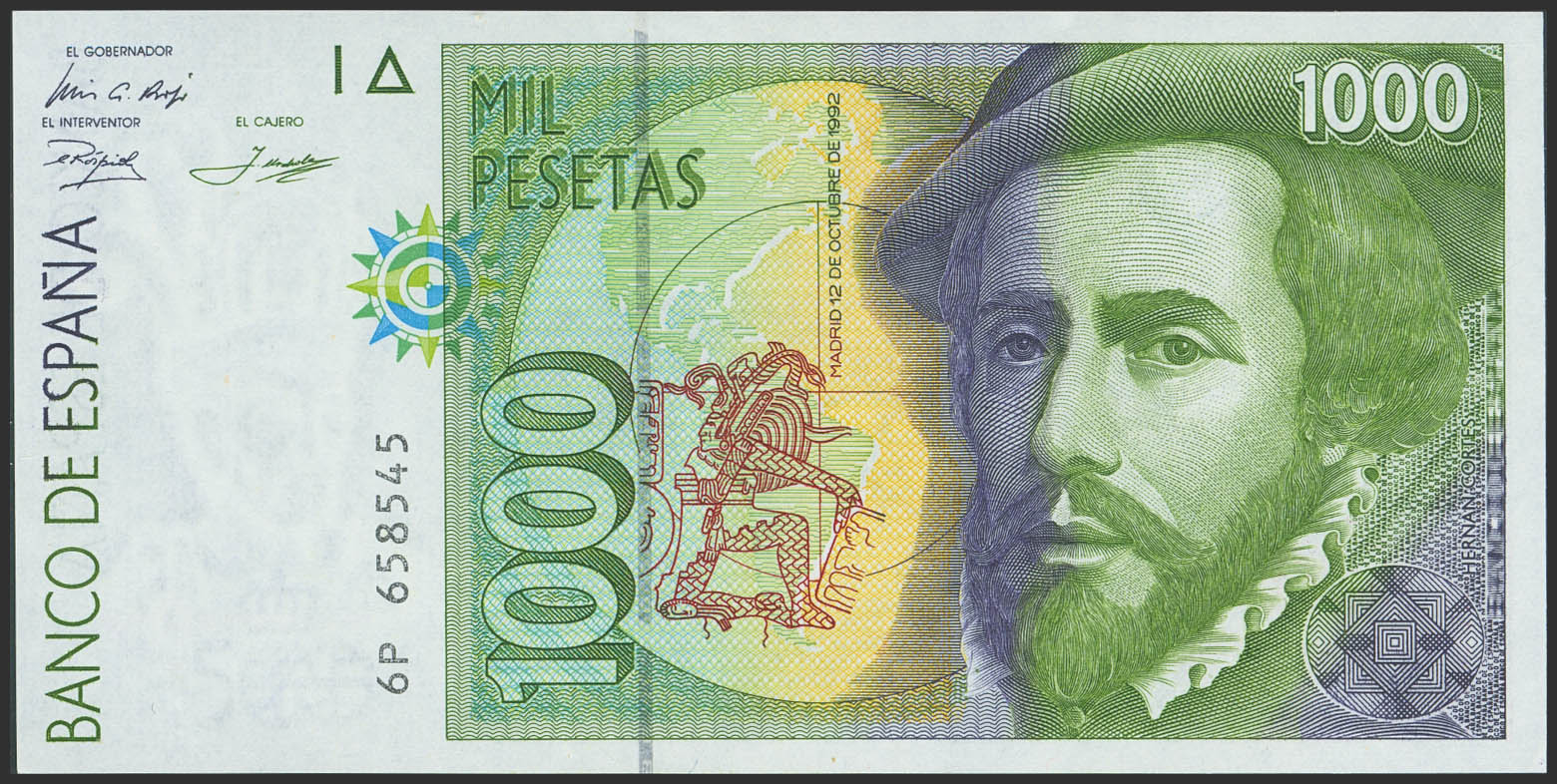 1000 Pesetas. October 12, 1992. Series 6P. (Edifil 2023: 483b). Uncirculated--.
