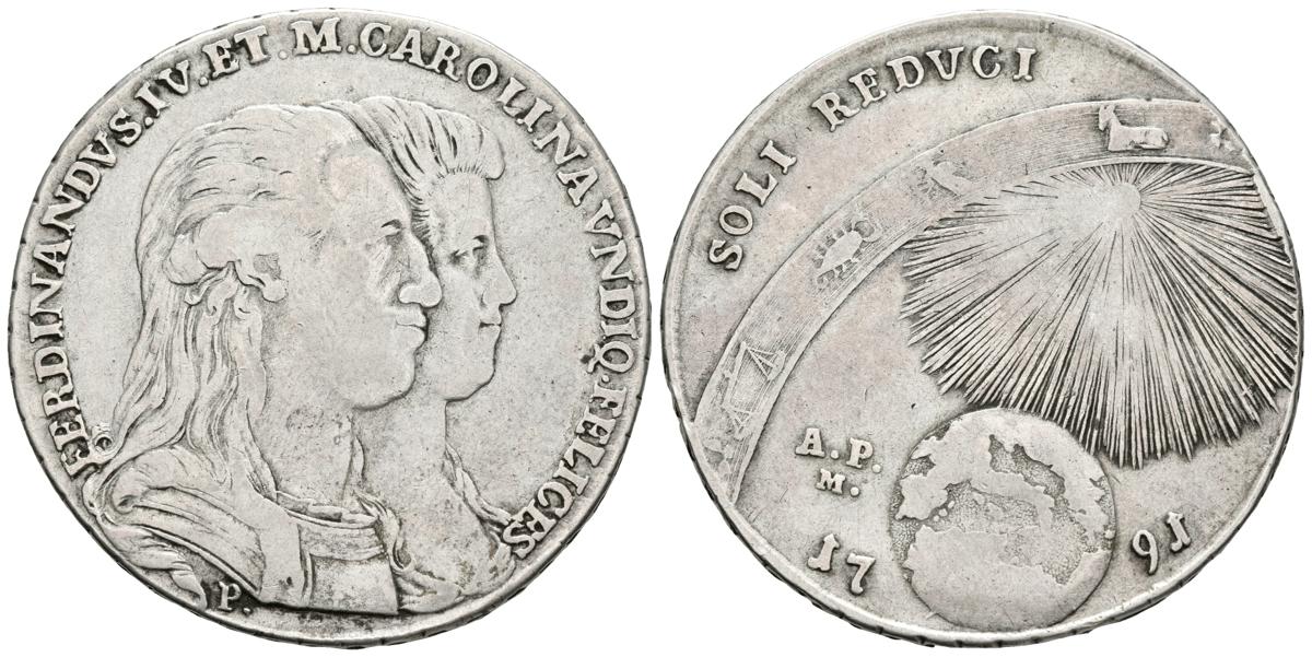 FERNANDO IV. Piastra de 120 Grana. 1791. Nápoles. A.P.M. Pannuti-Riccio 59; Gig. 59. Ar. 26,95g. MBC-.