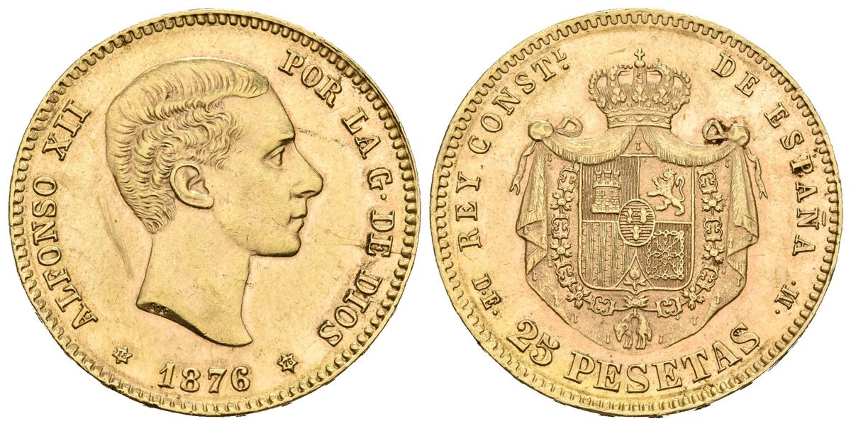 ALFONSO XII. 25 Pesetas. (Au. 8,07g/23mm). 1876 *18-76. Madrid DEM. (Cal-1). EBC. Limpiada.