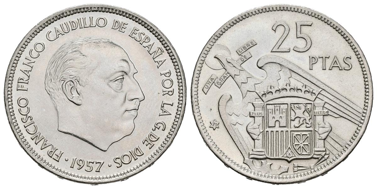ESTADO ESPAÑOL. 25 Pesetas. 1957 *71. Procedente de tira F.N.M.T. Cal-40. 8,39g. PROOF.