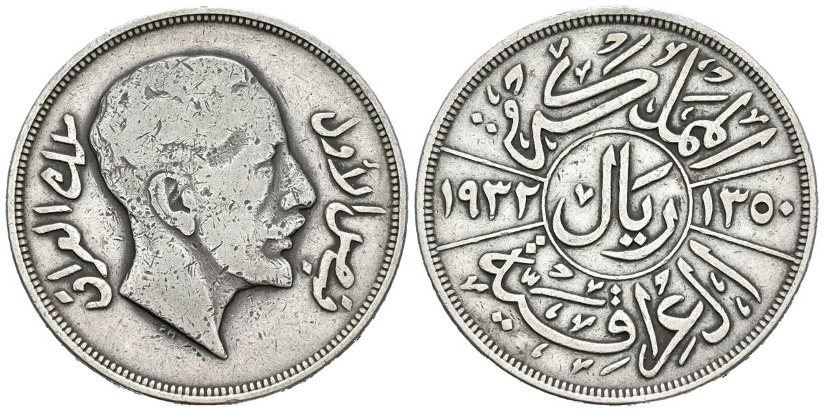 IRAQ. Faisal I. 1 Riyal. 1350 H-1932. Km#101. Ar. 19,72g. MBC-/MBC. Escasa.