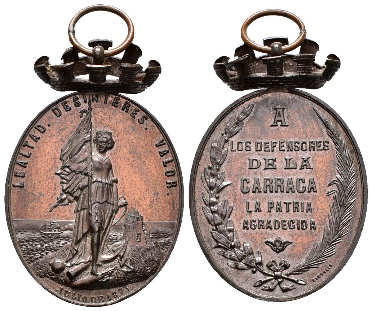A LOS DEFENSORES DE LA CARRACA, La Patria agradecida. Medalla. Julio de 1873. Grabador: Castells. Pérez Guerra 746. Ae. 23,51g. Sólo se concedieron 188 medallas. SC. Rara.