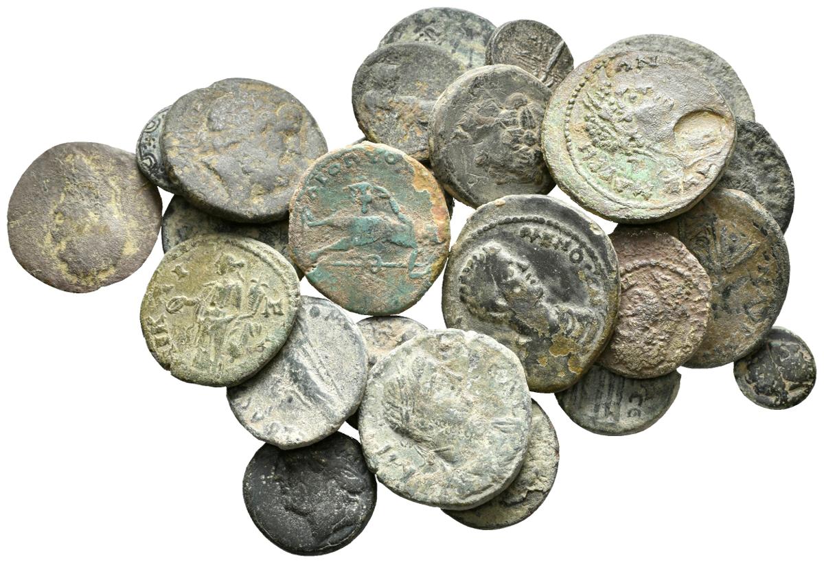 GRECIA e IMPERIO ROMANO. Lote compuesto por 27 bronces, conteniendo gran variedad de tipos y formatos tanto griegos como provinciales, todos diferentes. Ae. A EXAMINAR.