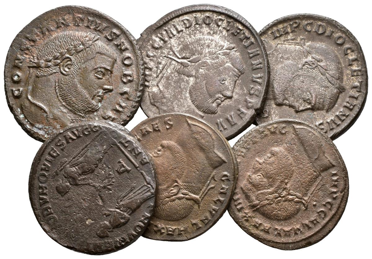 IMPERIO ROMANO. Lote compuesto por 6 Follis de Constancio (3), Galerio (2) y Diocleciano. Diferentes reversos y cecas. Ae. MBC-/MBC. A EXAMINAR.
