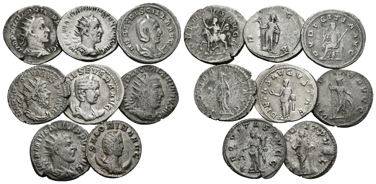 IMPERIO ROMANO. Lote compuesto por 8 Antoninianos, conteniendo: Filipo I (2); Trajano Decio; Otacilia Severa; Herennia Etruscilla; Valeriano; Póstumo y Salonina. Todos diferentes. Ar. MBC-/MBC. A EXAMINAR.