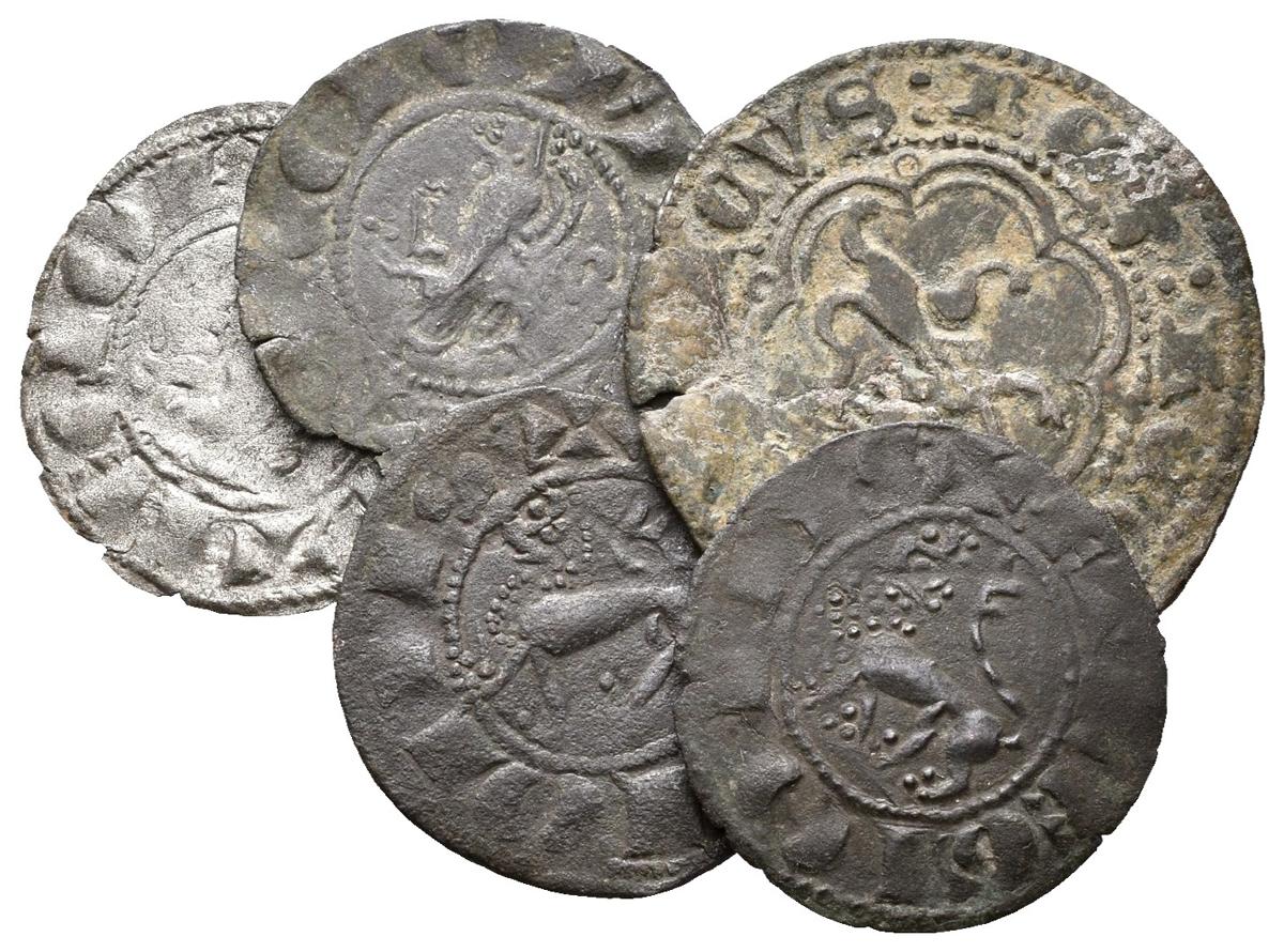 EPOCA MEDIEVAL. Lote compuesto por 6 monedas, conteniendo: Alfonso X. Dinero Burgos (3), Toledo; Alfonso XI. Cornado Cuenca y Enrique III. Blanca Sevilla. Ve. MBC-/MBC. A EXAMINAR.