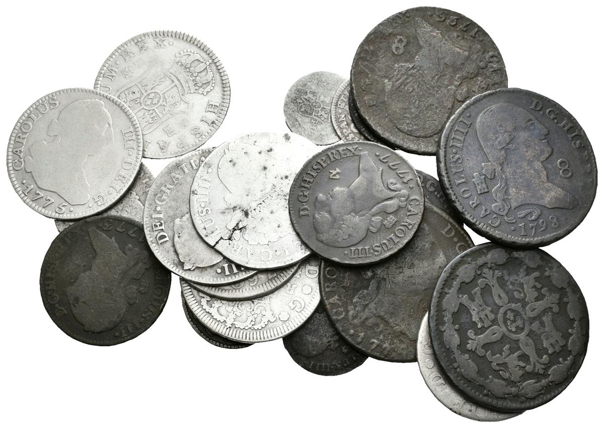 CARLOS III y CARLOS IV. Lote compuesto por 20 monedas, conteniendo variedad de fechas, valores y cecas, tanto en cobre como plata. Ar/Ae. RC/MBC-. A EXAMINAR.