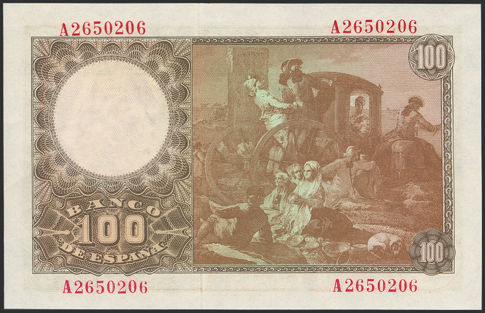 English 100 Pesetas. May 2, 1948. Series A. (Edifil 2023: 456a). Original finish. Uncirculated-.