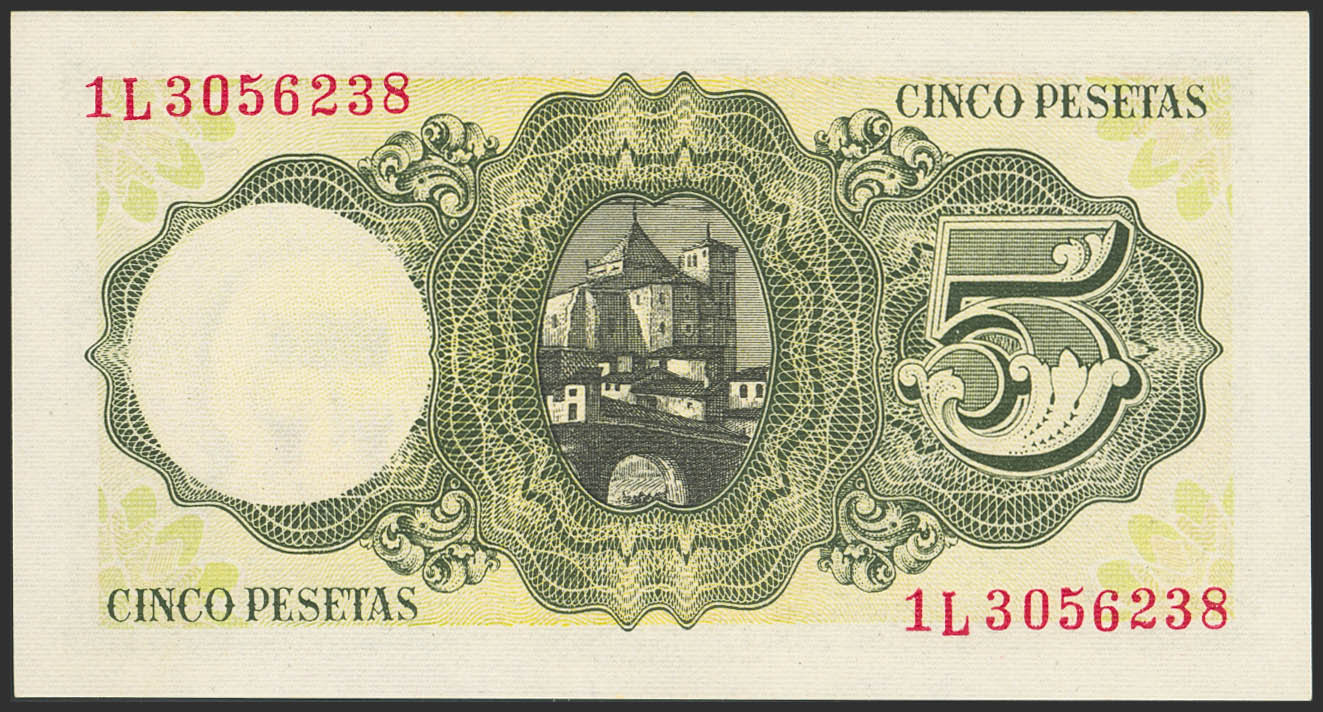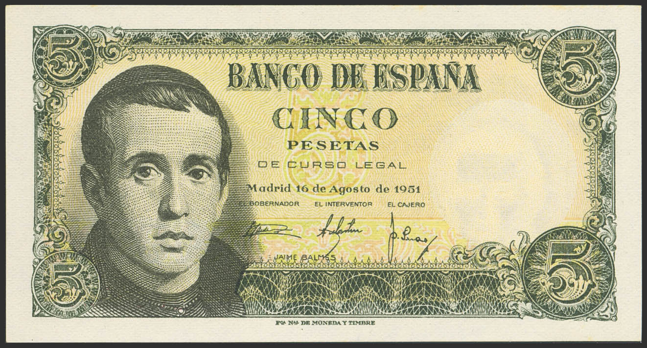 5 Pesetas. August 16, 1951. Series 1L, last series issued. (Edifil 2023: 459b). Original finish. UNC.