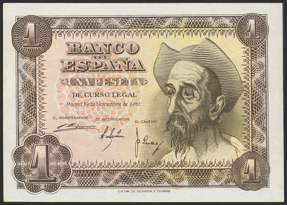 English 1 Peseta. November 19, 1951. No series. (Edifil 2023: 461). Original condition. Uncirculated.