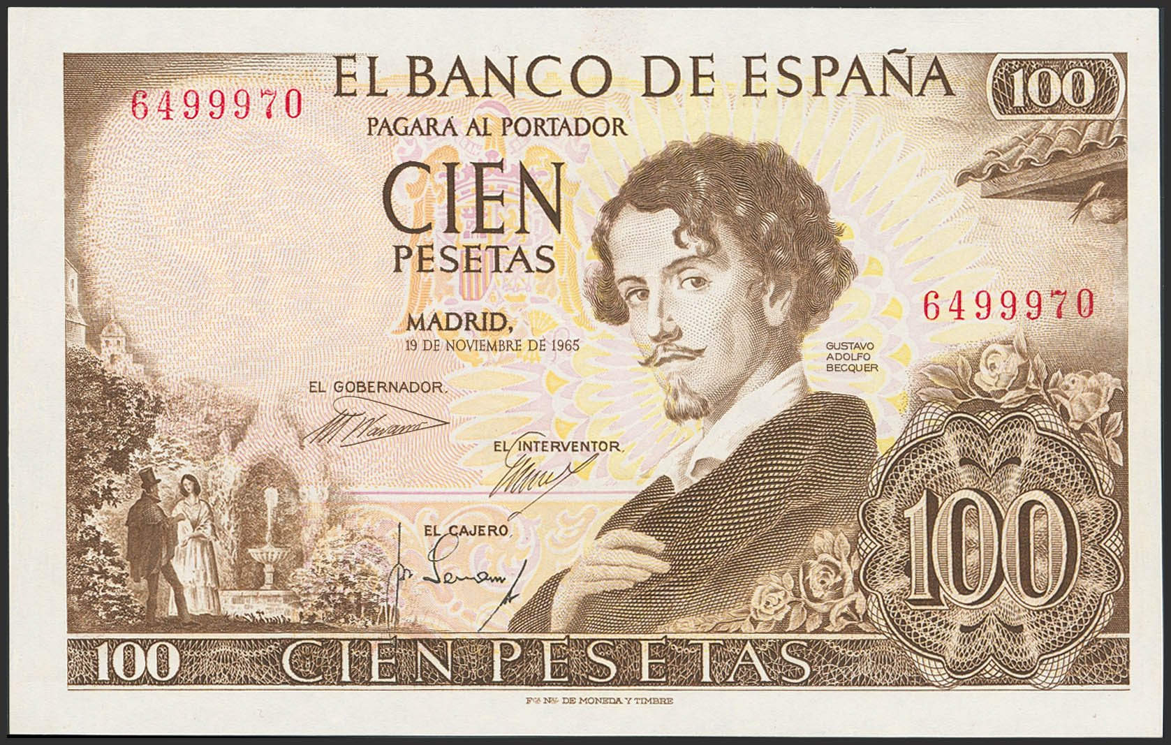 100 Pesetas. November 19, 1965. No series. (Edifil 2023: 470). Original condition. Uncirculated-.
