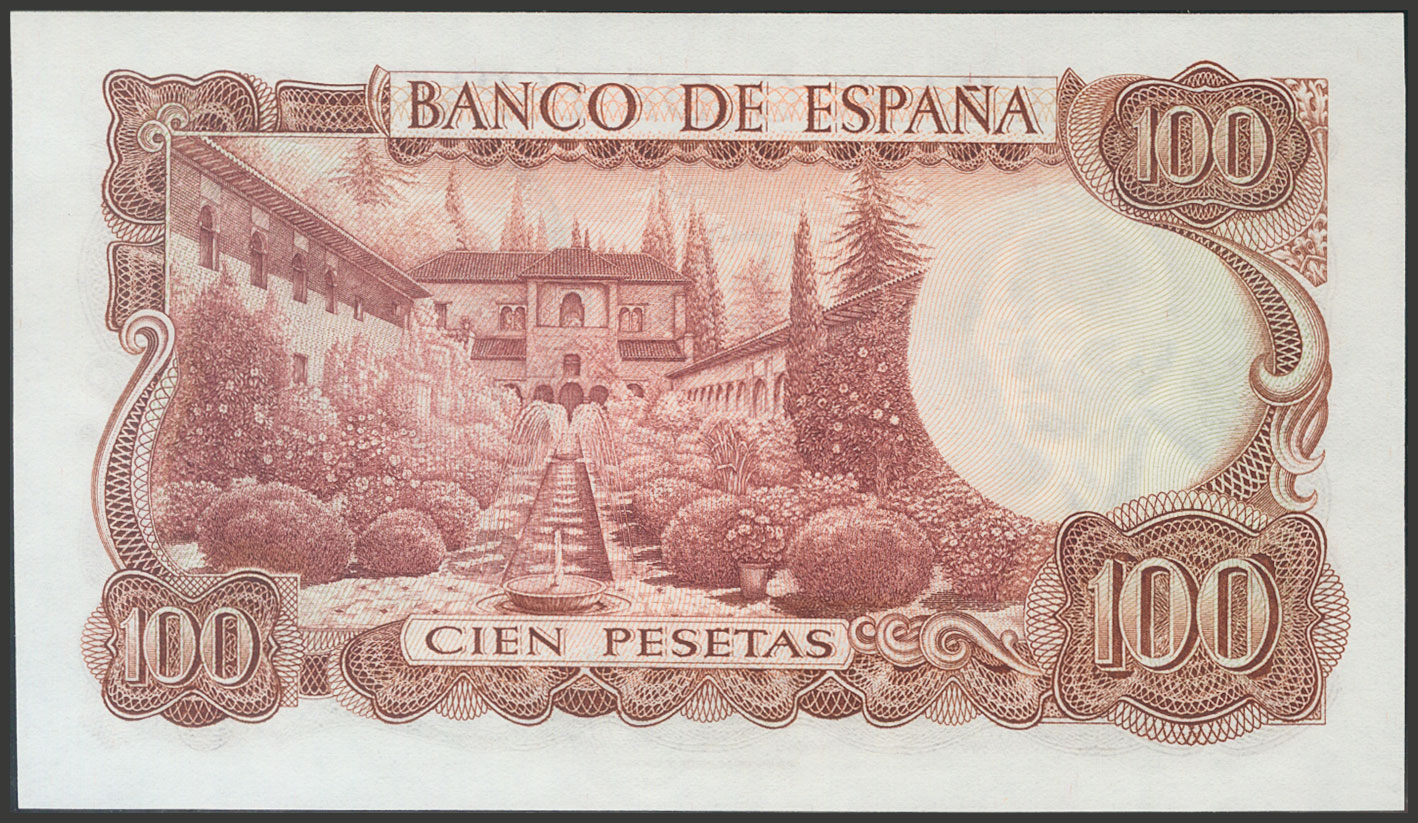 English 100 Pesetas. November 17, 1970. Series 4B and palindromic numbering. (Edifil 2017: 472b). Uncirculated.