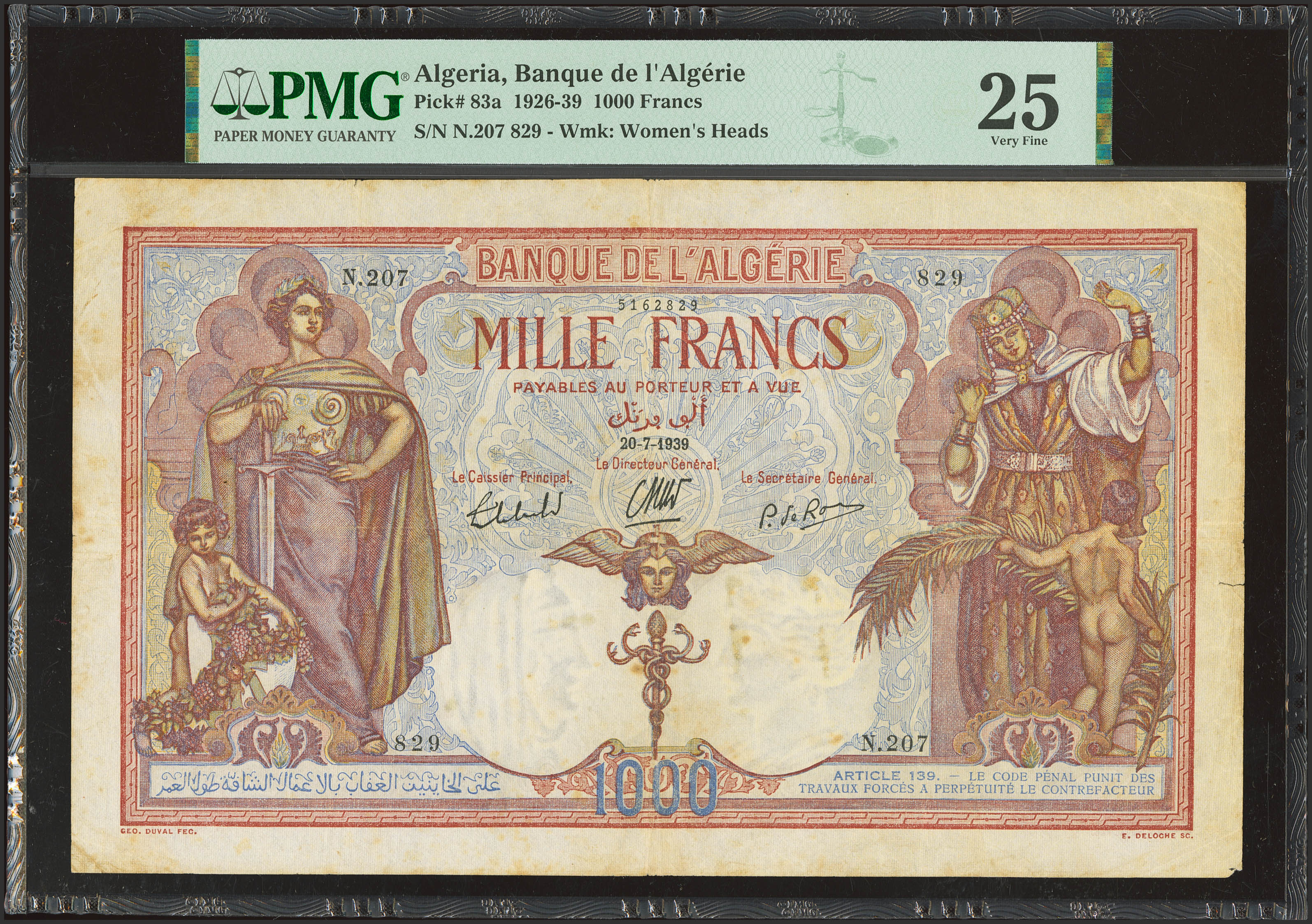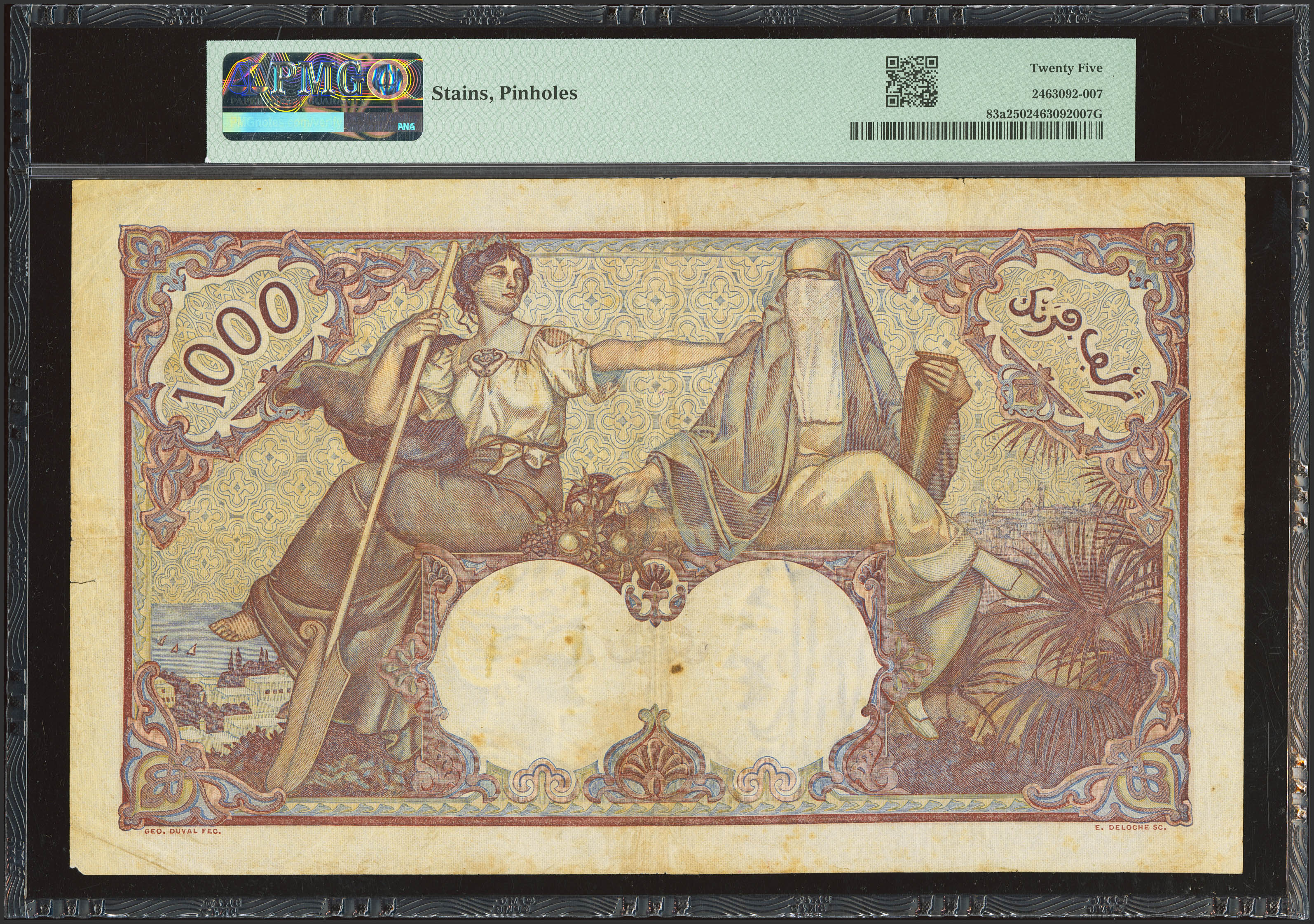 ALGERIA. 1000 Francs. 20 July 1939. Banque de l'Algerie. (Pick: 83a). PMG25 (stains, pinholes).