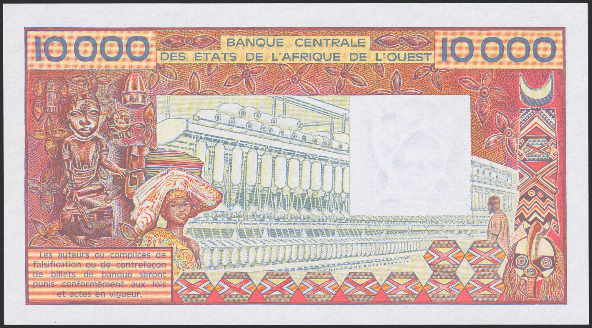 WEST AFRICAN STATES. 10,000 Francs. (1977ca). Banque Centrale des Etats de l'Afrique de l'Ouest. Ivory Coast. (Pick: 109Aj). Handling marks. Almost Uncirculated.