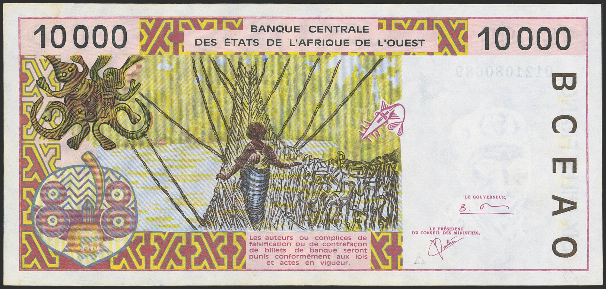 WEST AFRICAN STATES. 10000 Francs. 2001. Banque Centrale des Etats de l'Afrique de l'Ouest. Ivory Coast. (Pick: 114Aj). Uncirculated.