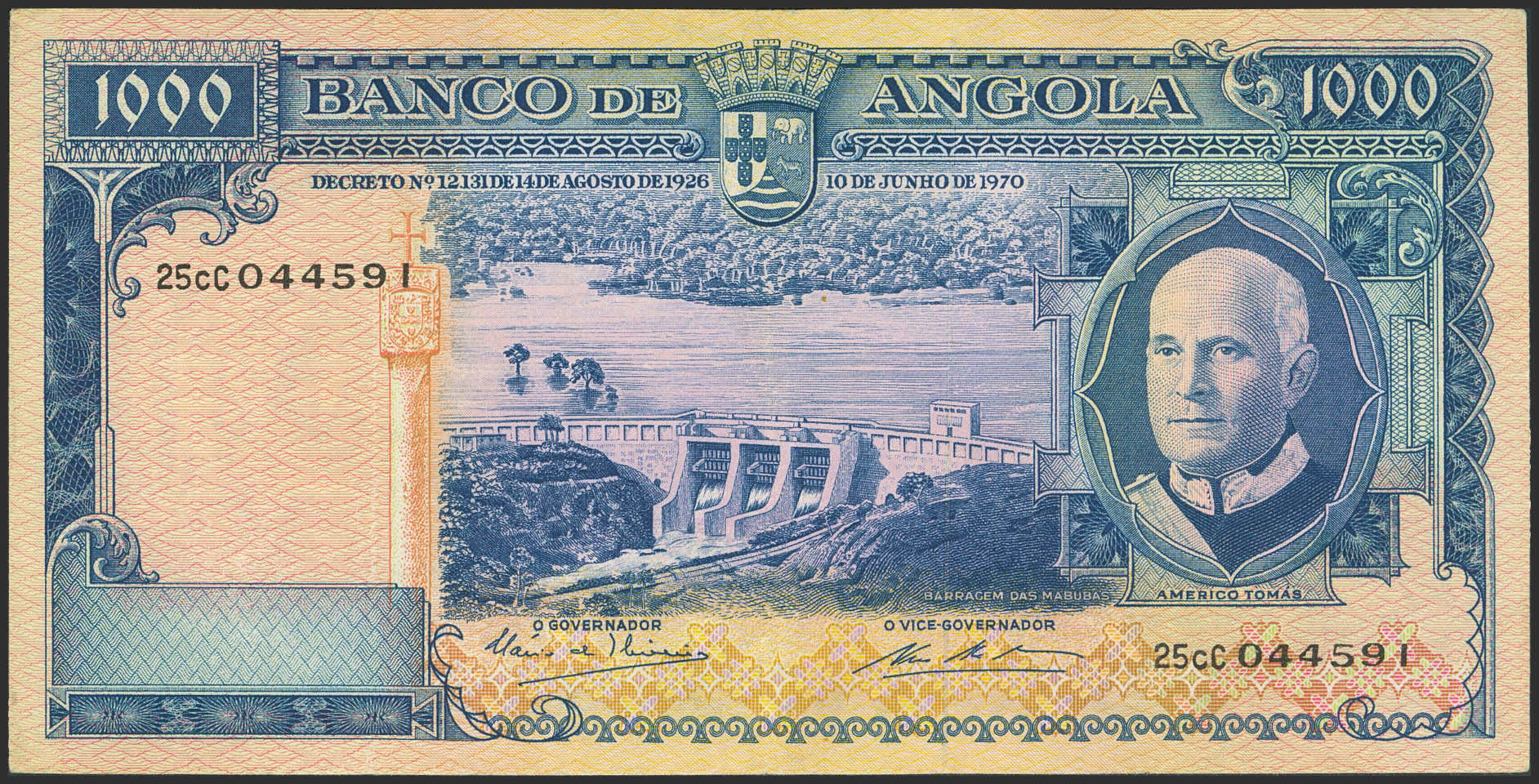 ANGOLA. 1000 Shields. June 10, 1970. Bank of Angola. (Pick: 98). Very Fine.