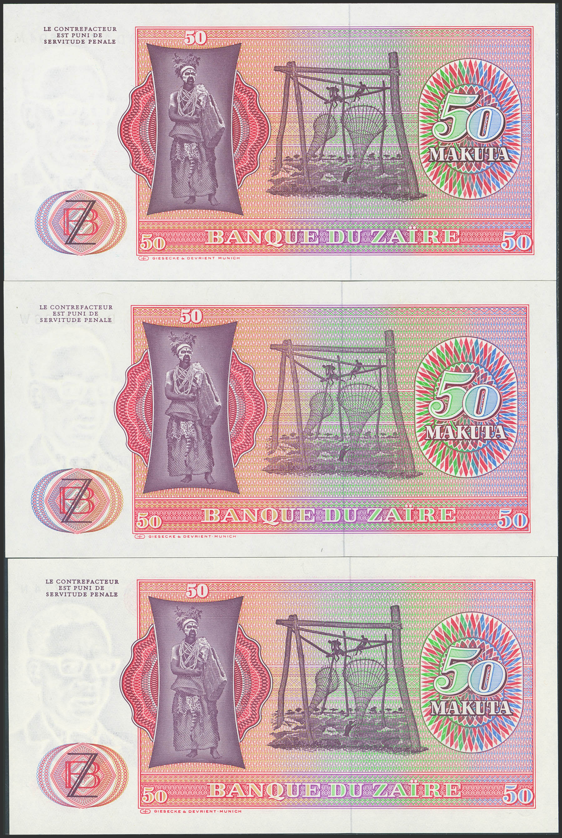 ZAIRE. Lot of 3 notes of 50 Makuta. 1978 to 1980. Banque du Zaire. (Pick: 16c, 17a, 17b). Uncirculated.