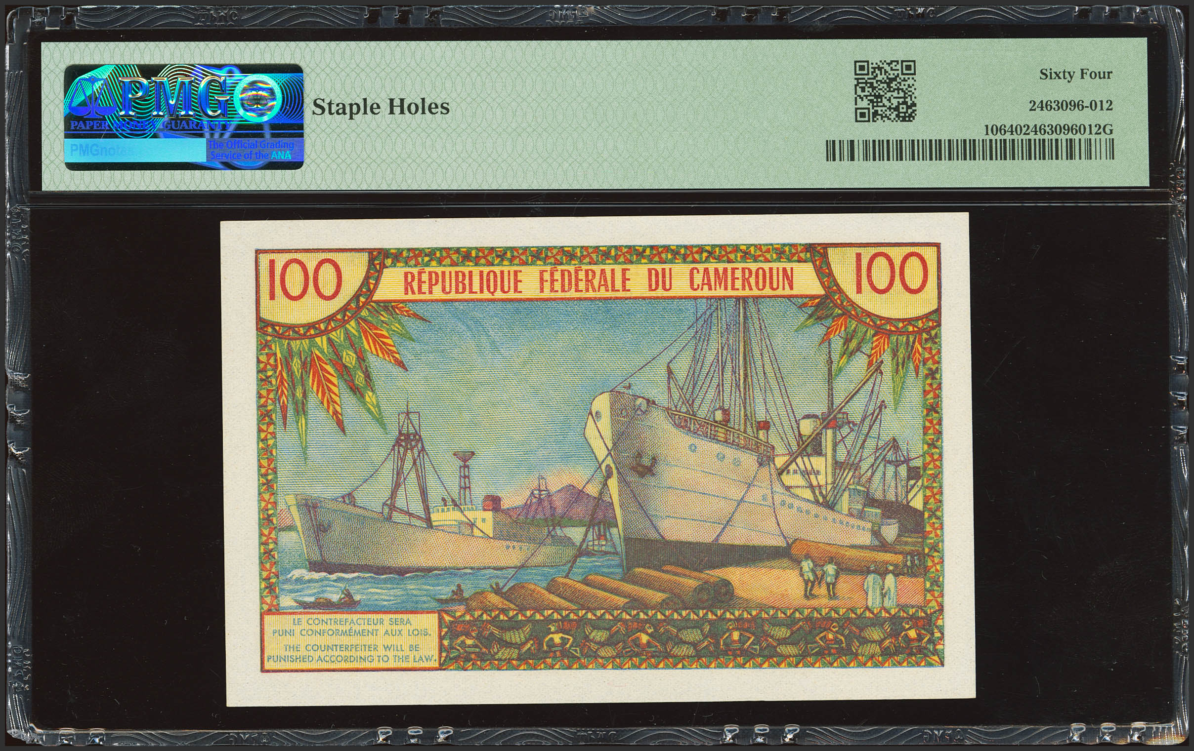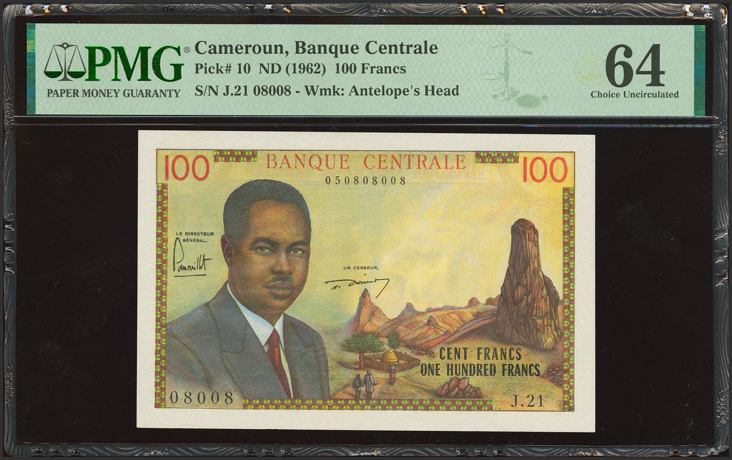 CAMEROON. 100 Francs. (1962ca). Central Bank. (Pick: 10). PMG64 (staple holes).
