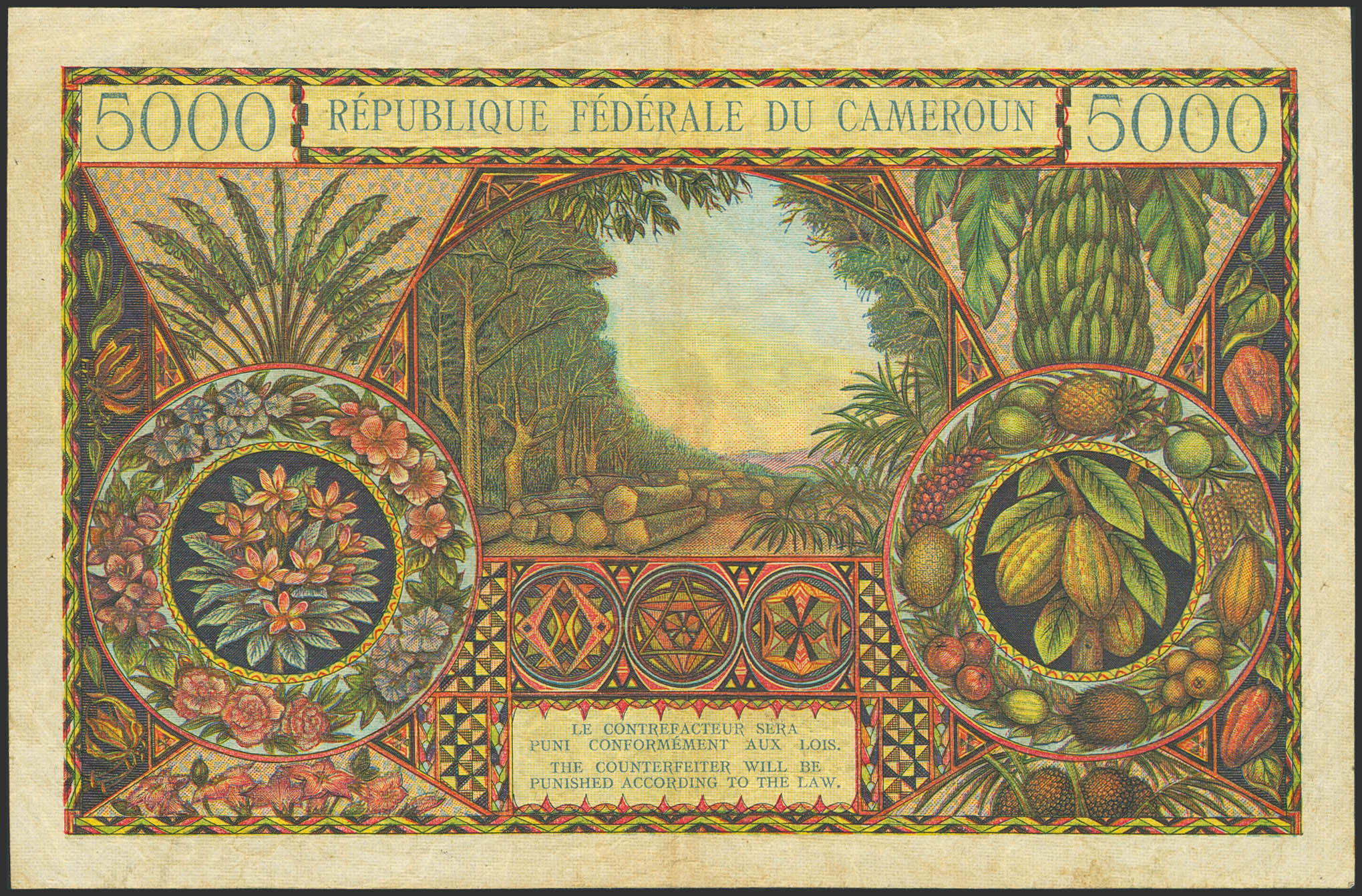 CAMEROON. 5000 Francs. (1962ca). Central Bank. (Pick: 13). Pinholes. Fine.
