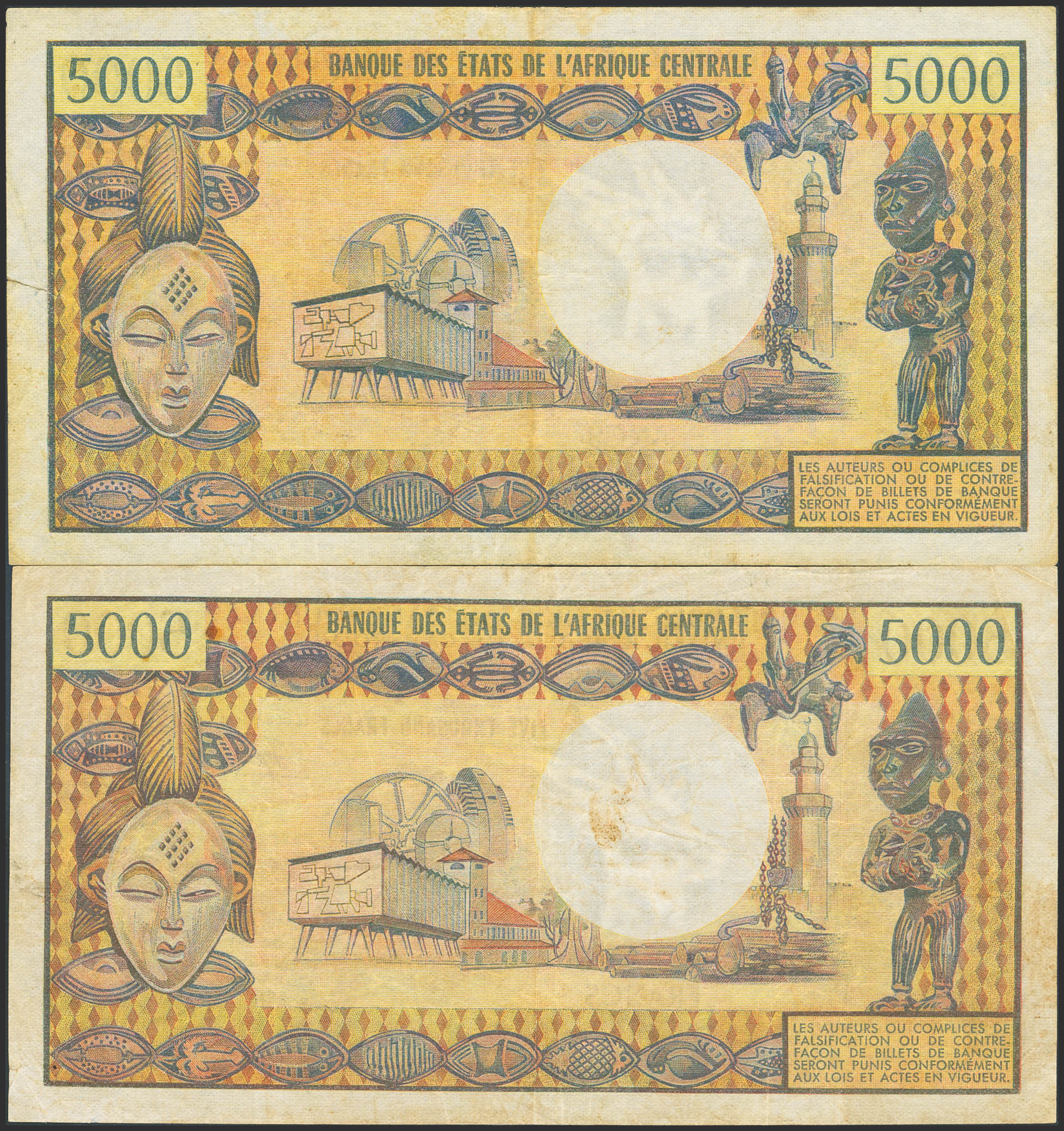 CAMEROON. Lot of 2 notes of 5000 Francs. (1974ca). Banque des Etats de l'Afrique Centrale. (Pick: 17c). More than Very Fine.
