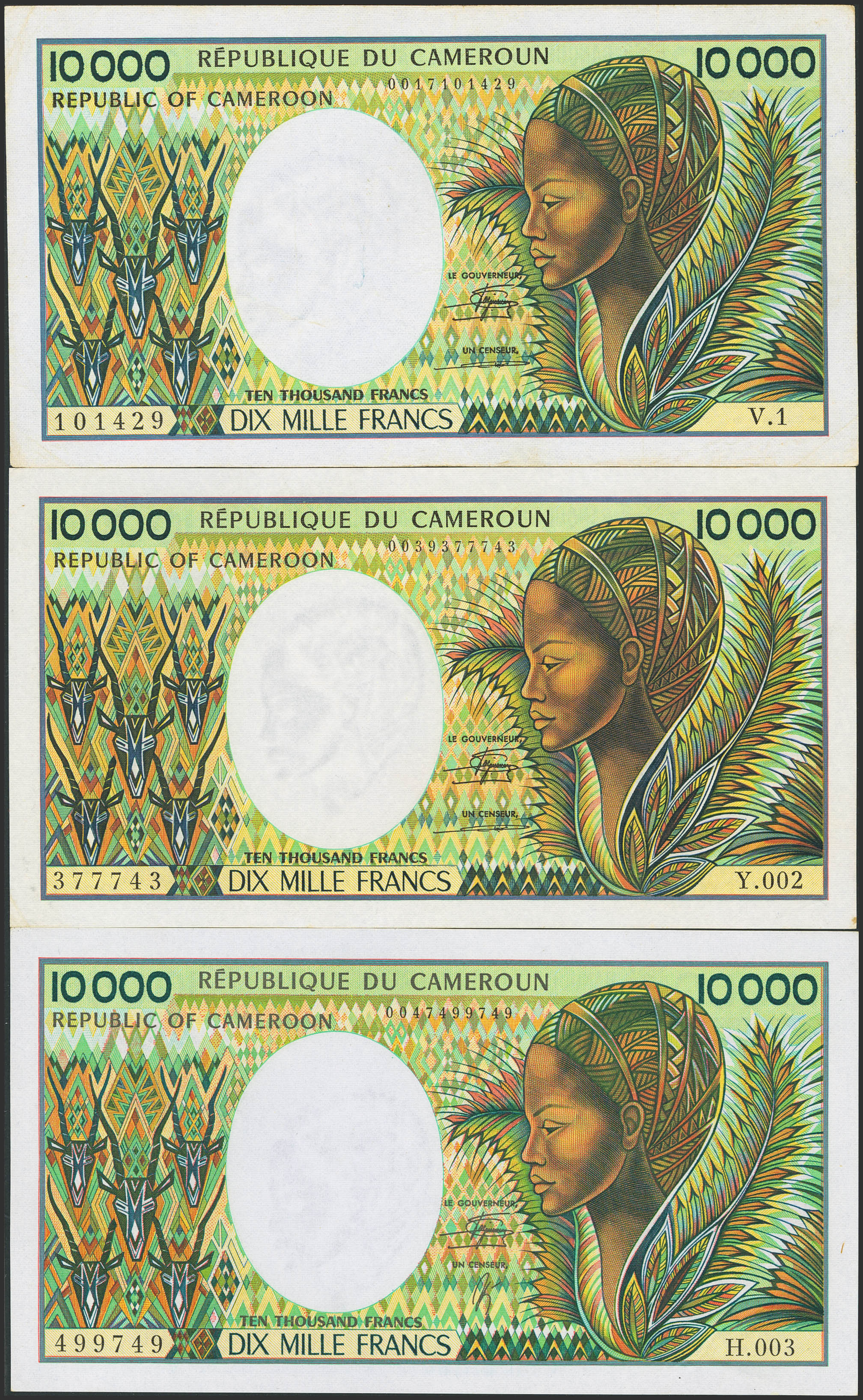 CAMEROON. Lot of 3 notes of 10000 Francs. (1984ca). Banque des Etats de l'Afrique Centrale. Republic of Cameroun. (Pick: 23). Less than Uncirculated (2) and Extremely Fine.