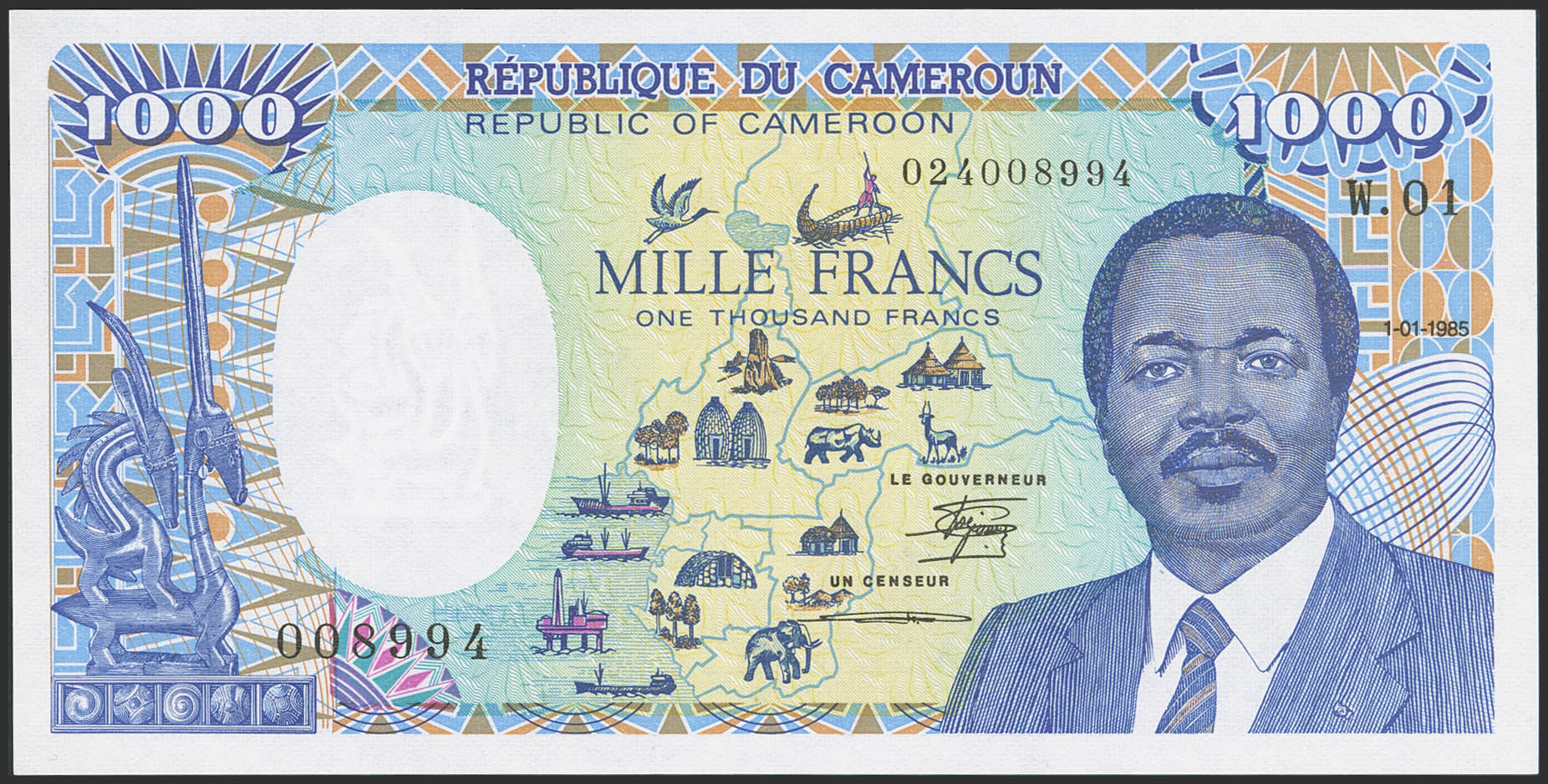 CAMEROON. 1000 Francs. 1 January 1985. Banque des Etats de l'Afrique Centrale. Republic of Cameroun. (Pick: 25). Almost Uncirculated.