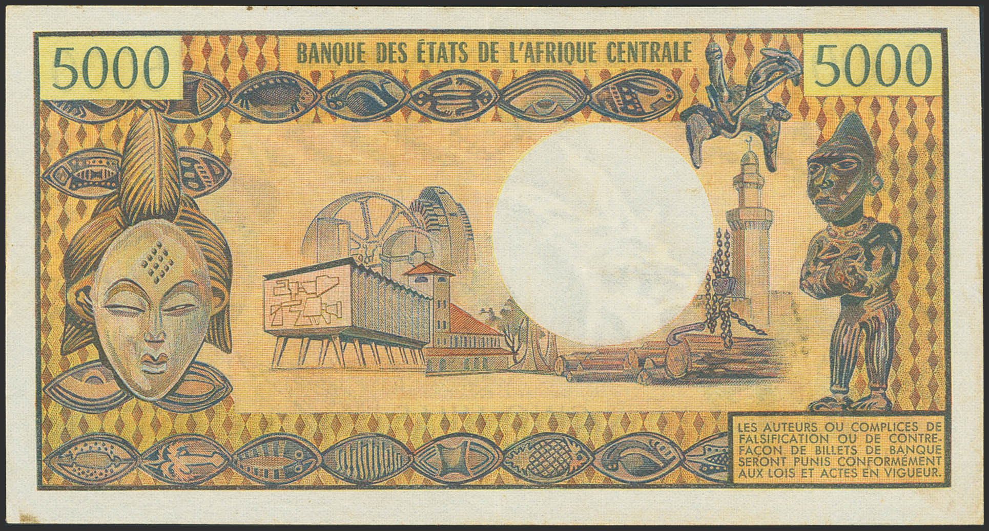 CENTRAL AFRICAN REPUBLIC. 5000 Francs. (1974ca). Banque des Etats de l'Afrique Centrale. (Pick: 3b). More than Very Fine.