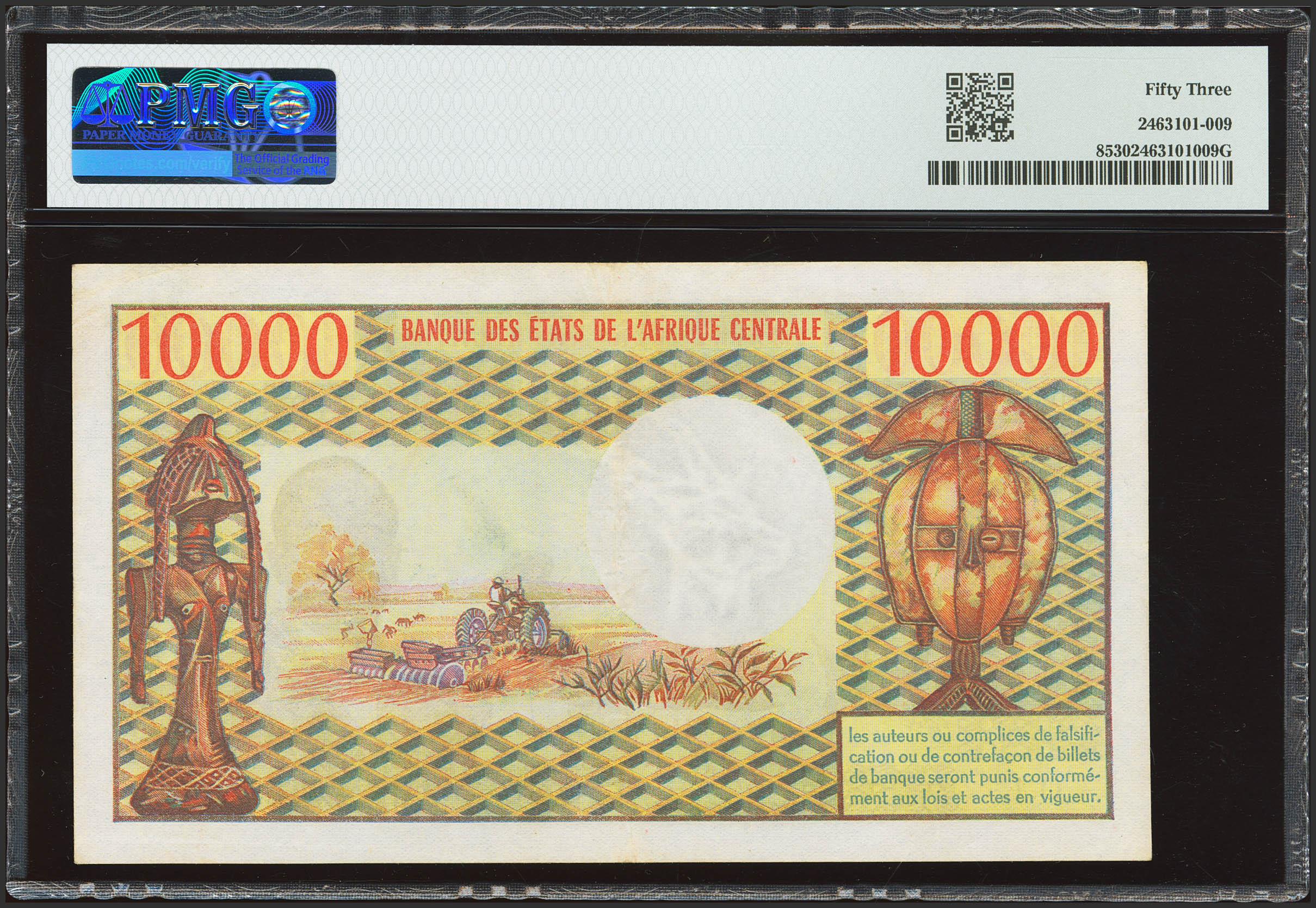 English CENTRAL AFRICAN REPUBLIC. 10000 Francs. (1976ca). Banque des Etats de l'Afrique Centrale. (Pick: 8). PMG53.