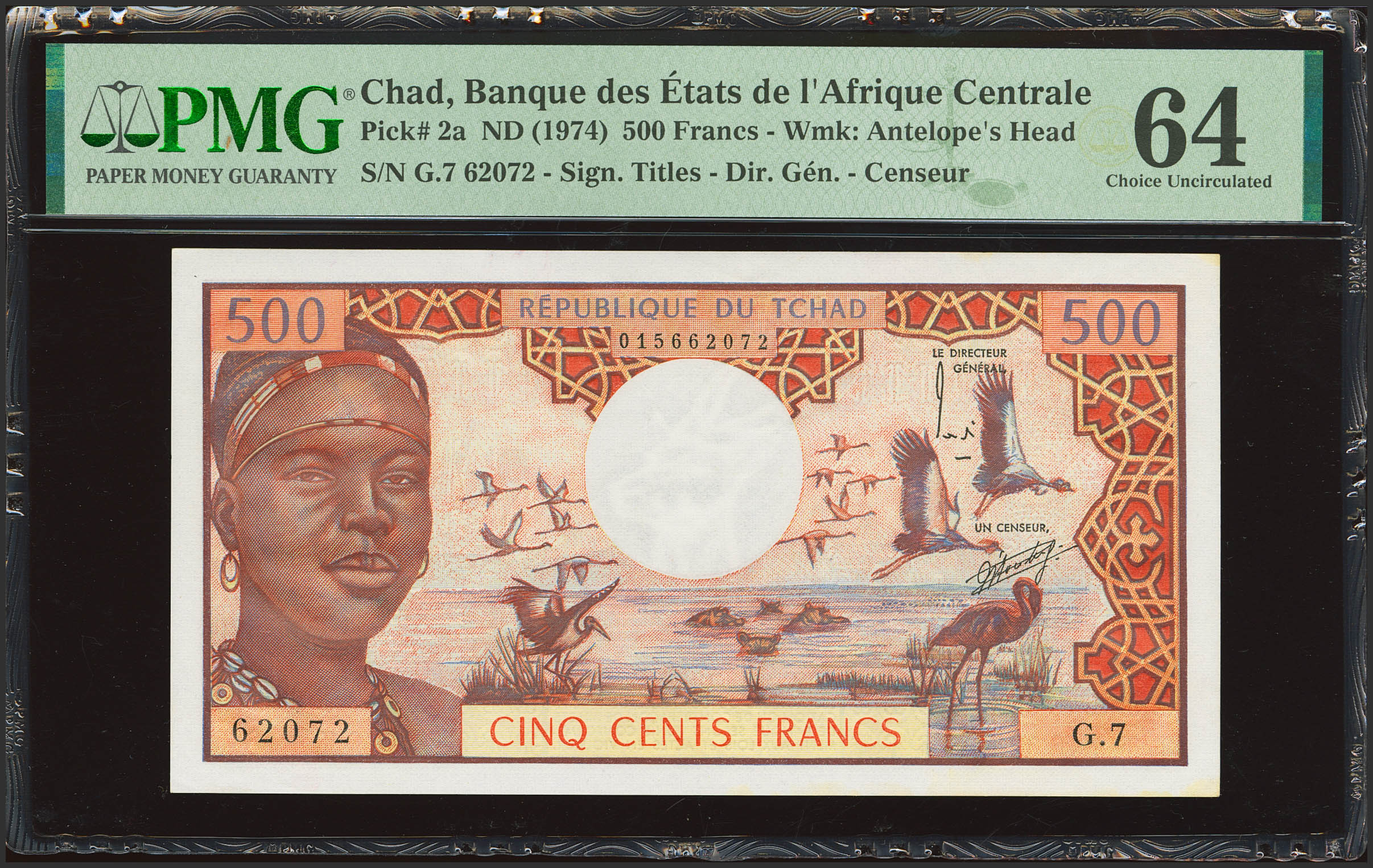CHAD. 500 Francs. (1974ca). Banque des Etats de l'Afrique Centrale. (Pick: 2a). PMG64.