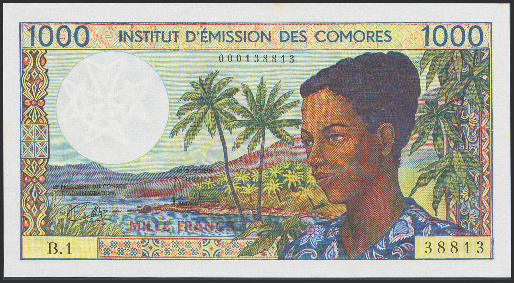 COMOROS. 1000 Francs. (1976ca). Institute d'Emission. (Pick: 8a). Less than Uncirculated.
