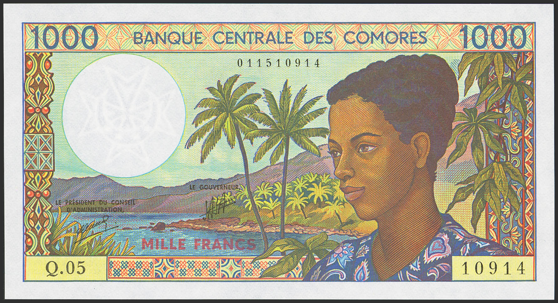 COMOROS. 1000 Francs. (1984ca). Central Bank. (Pick: 11b). Uncirculated.