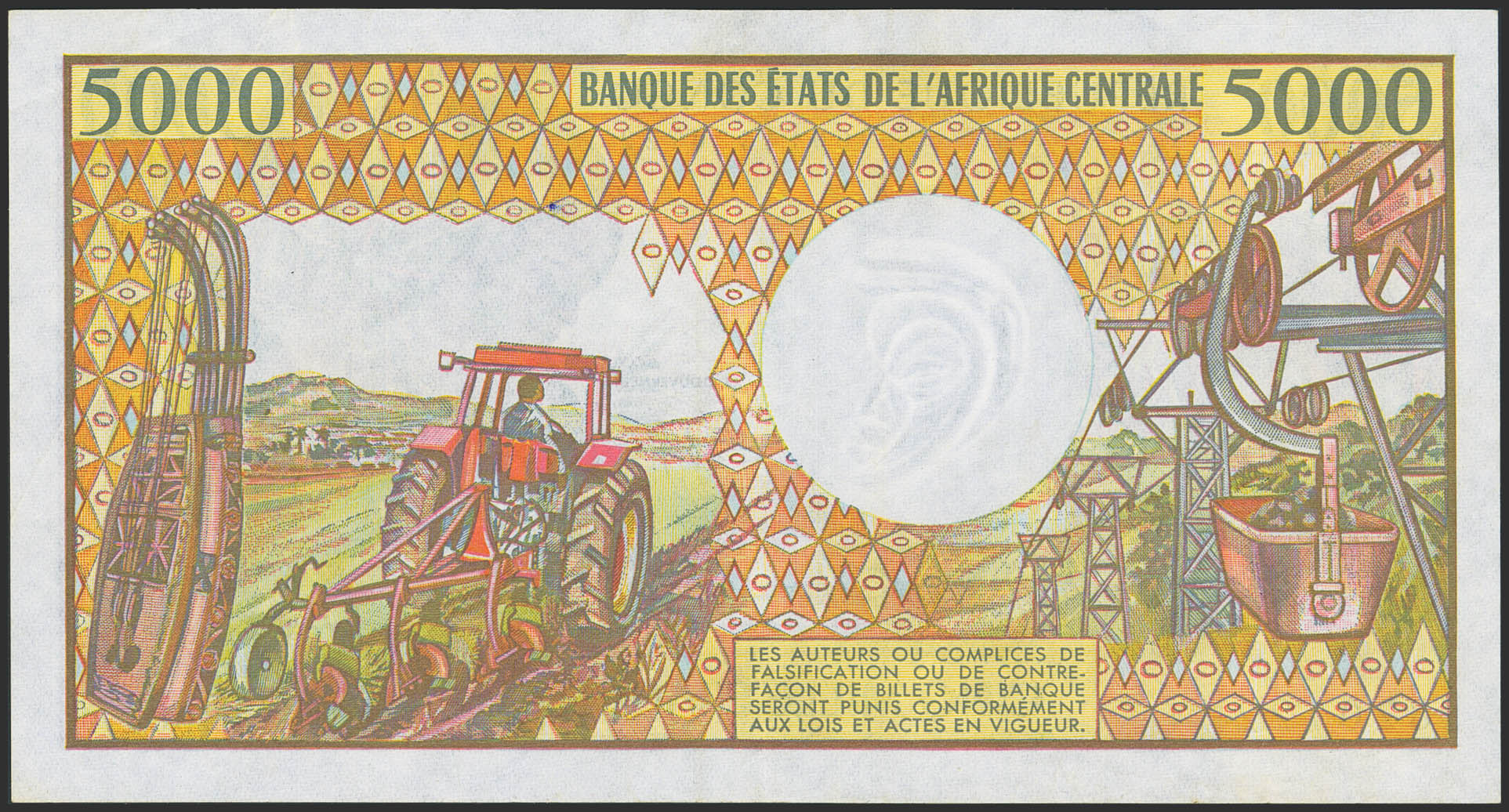 CONGO. 5000 Francs. (1991ca). Banque Centrale des Etats del'Afrique Centrale. (Pick: 6b). Extremely Fine.