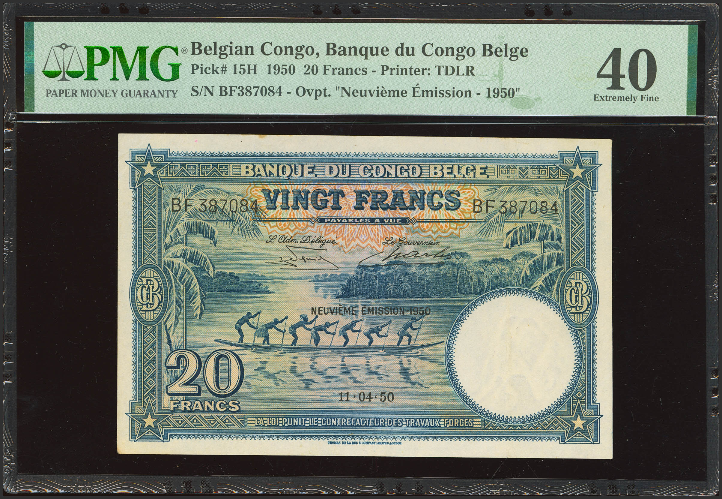 BELGIAN CONGO. 20 Francs. 11 April 1950. Banque du Congo Belge. (Pick: 3:00 p.m.). PMG40