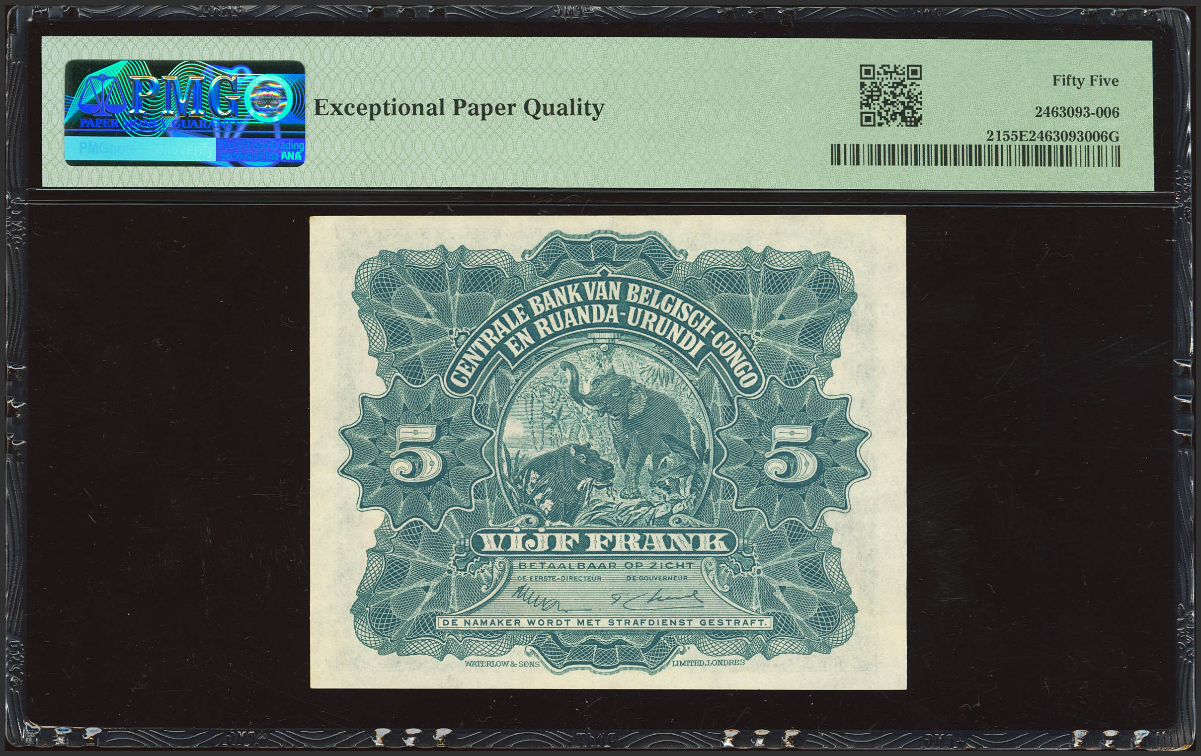BELGIAN CONGO. 5 French. 1 November 1952. Banque Centrale du Congo Belge et du Ruanda-Urundi. (Pick: 21). PMG55EPQ.
