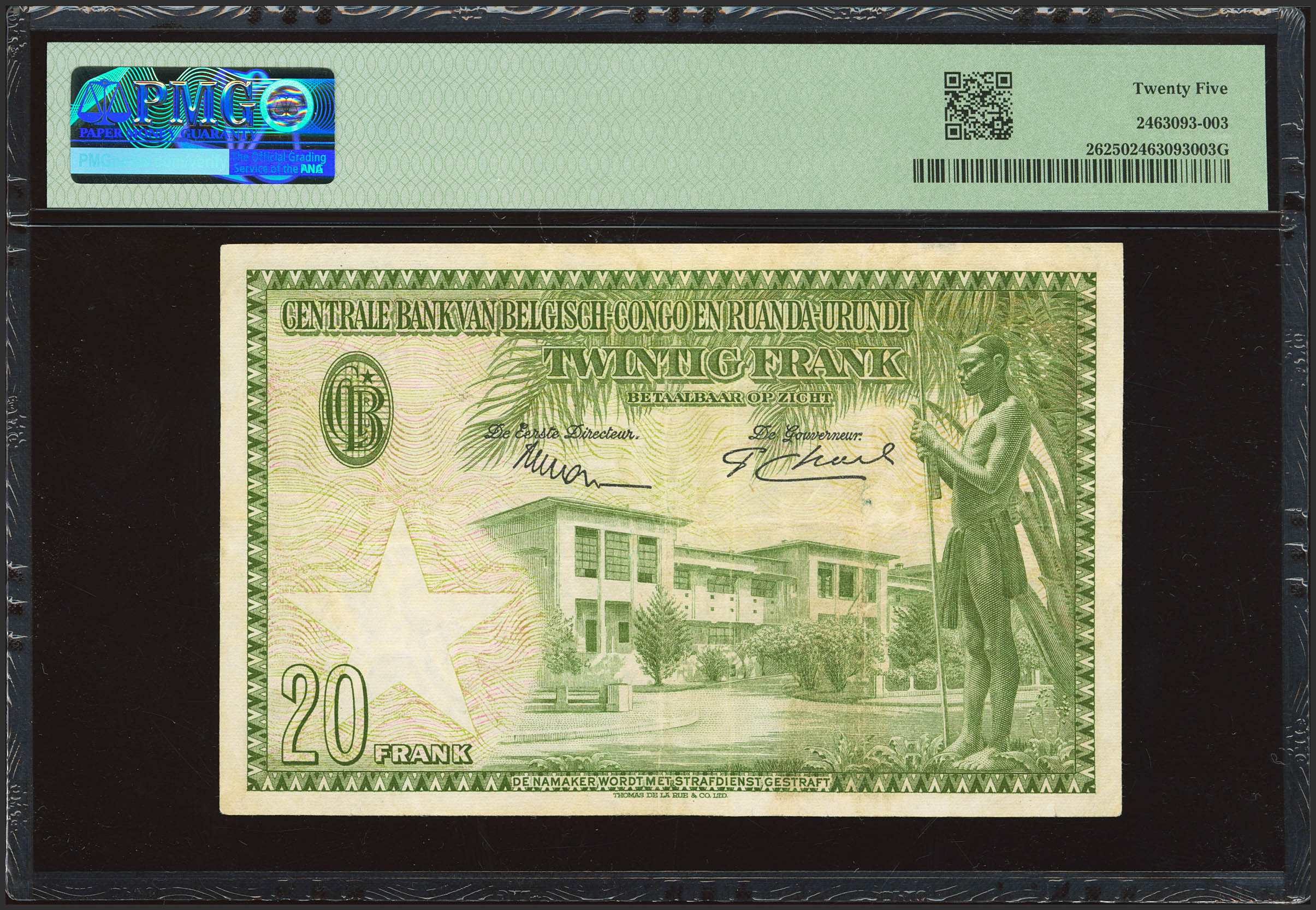 BELGIAN CONGO. 20 Francs. 15 December 1953. Banque Centrale du Congo Belge et du Ruanda-Urundi. (Pick: 26). PMG25.