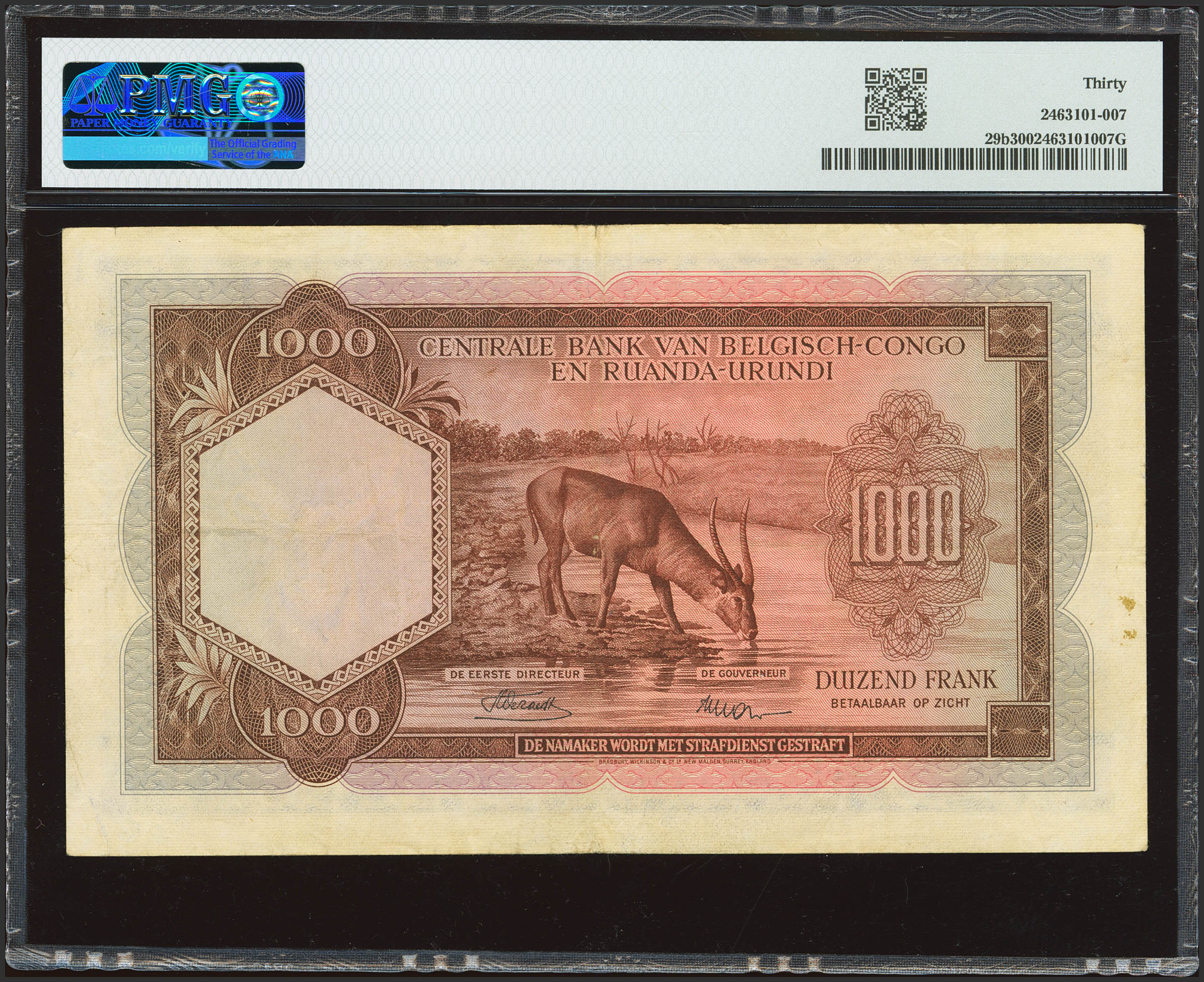 BELGIAN CONGO. 1000 Francs. 15 February 1955. Banque Centrale du Congo Belge et du Ruanda-Urundi. (Pick: 29b). PMG30.