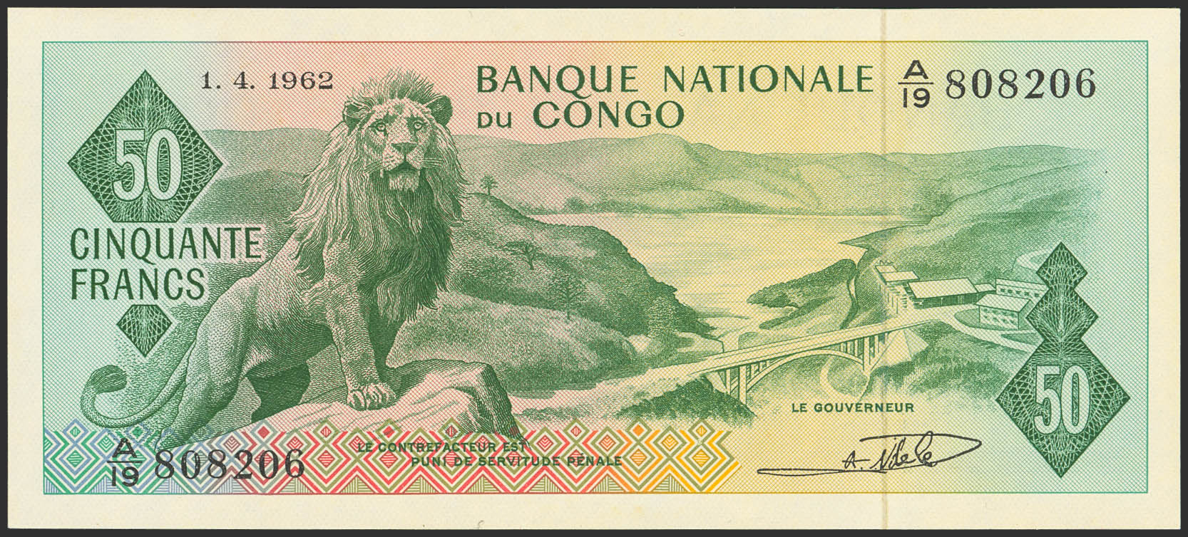 CONGO DEMOCRATIC REPUBLIC. 50 Francs. Bank Nationale. (Pick: 5a). Uncirculated.