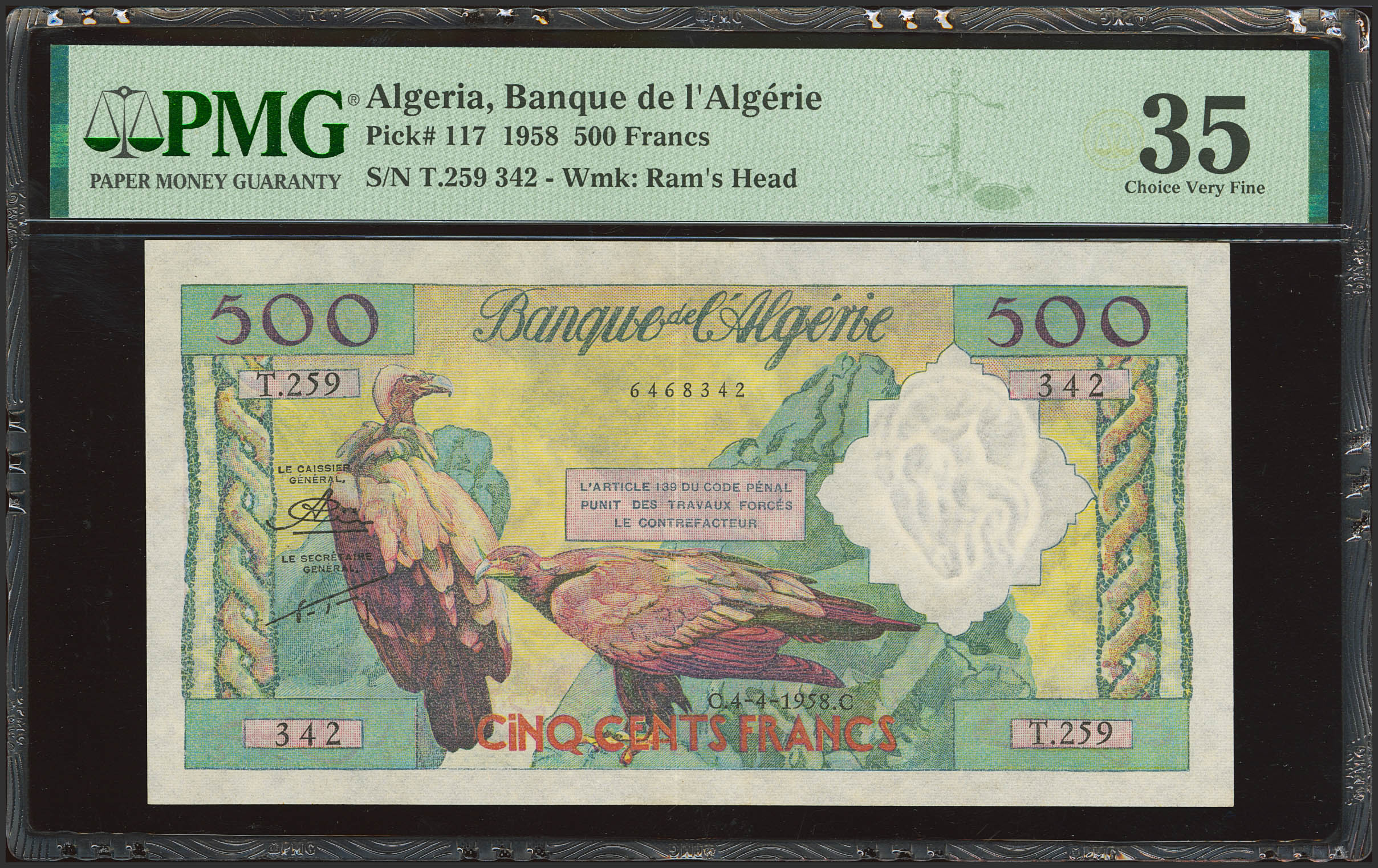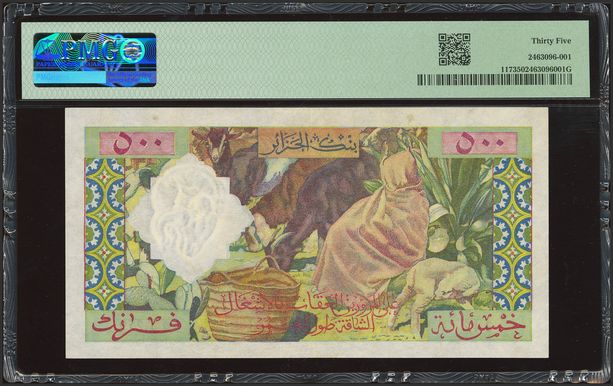 English ALGERIA. 500 Francs. 4 April 1958. Banque de l'Algerie. (Pick: 117). PMG35