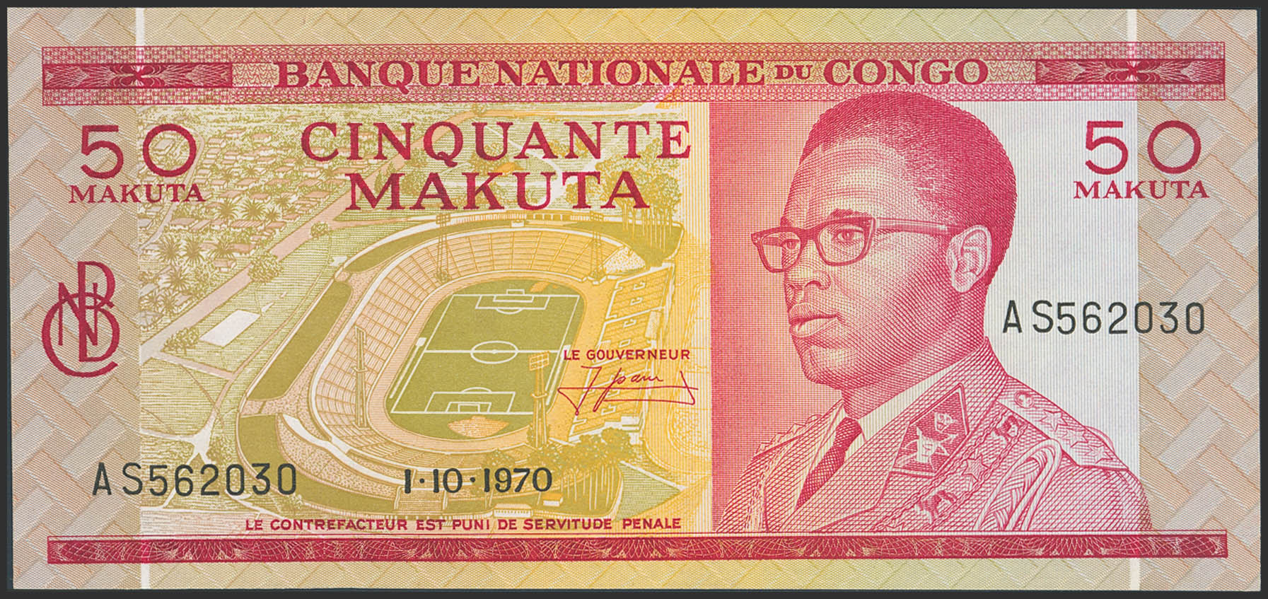 CONGO DEMOCRATIC REPUBLIC. 50 Makuta. 1 October 1970. Banque Nationale. (Pick: 11b). Almost Uncirculated.