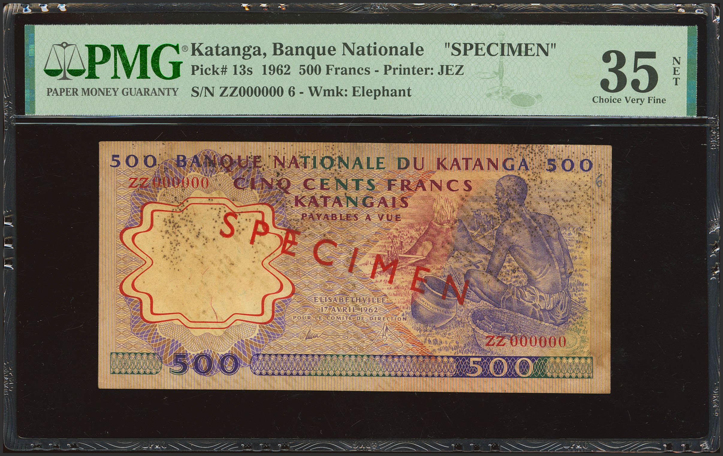 CONGO-KATANGA. 500 Francs. April 17, 1962. Banque Nationale. (Pick: 13s). PMG35NET (previously mounted, stains).