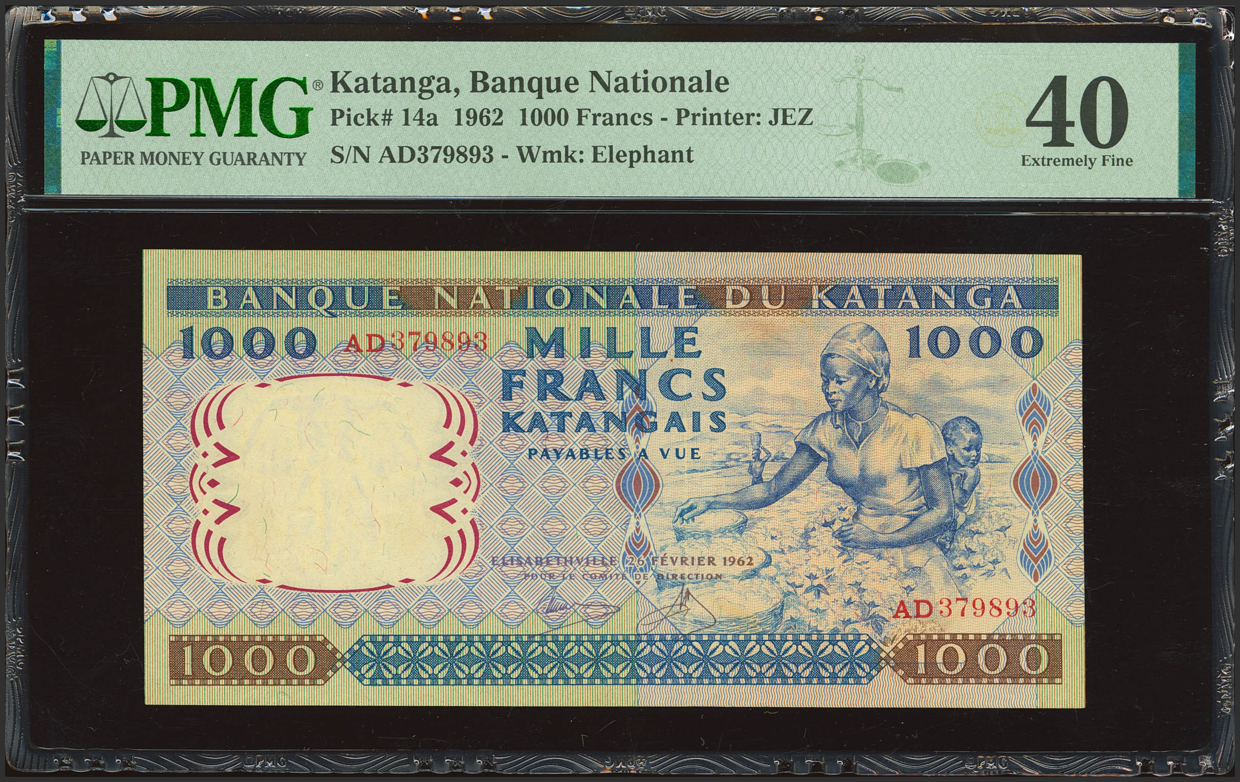 CONGO-KATANGA. 1000 Francs. 26 February 1962. Banque Nationale. (Pick: 14a). PMG40.
