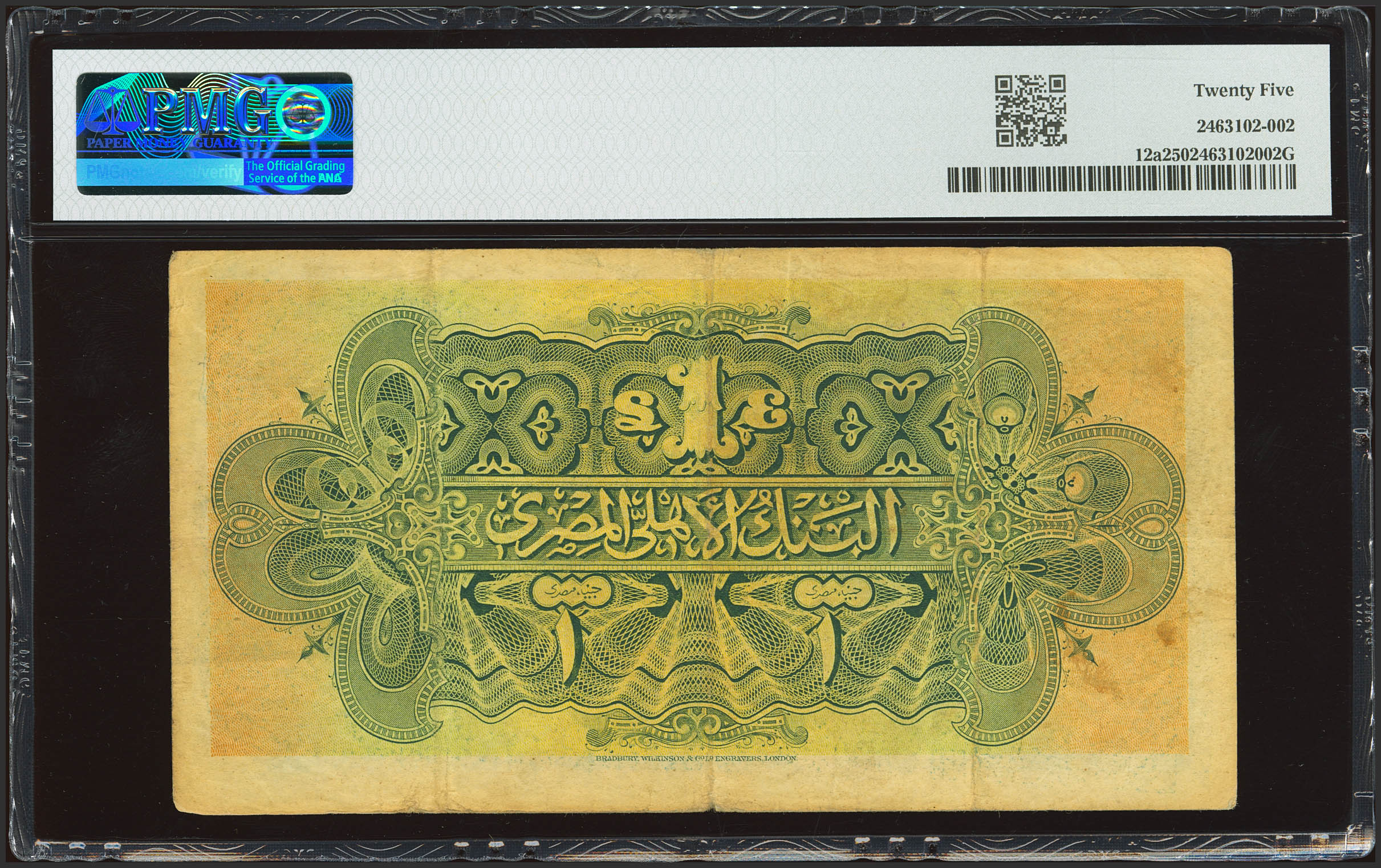 English EGYPT. 1 Pound. August 25, 1918. National Bank. (Pick: 12a). PMG25.