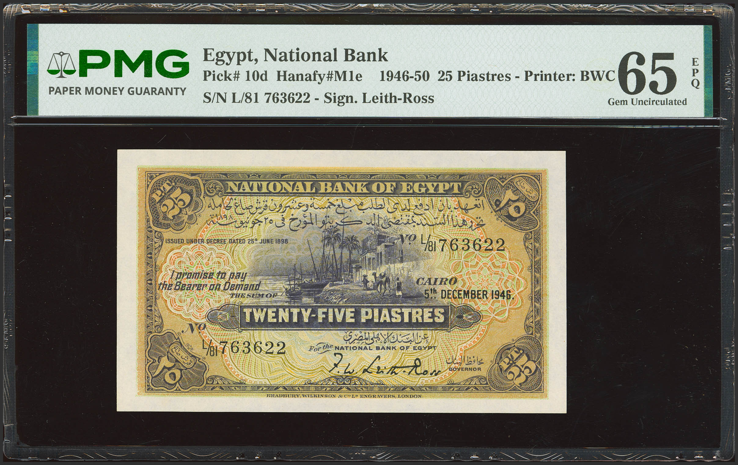 English EGYPT. 25 Piastres. December 5, 1946. National Bank. Signature of Leith-Ross. (Pick: 10d). PMG65EPQ.