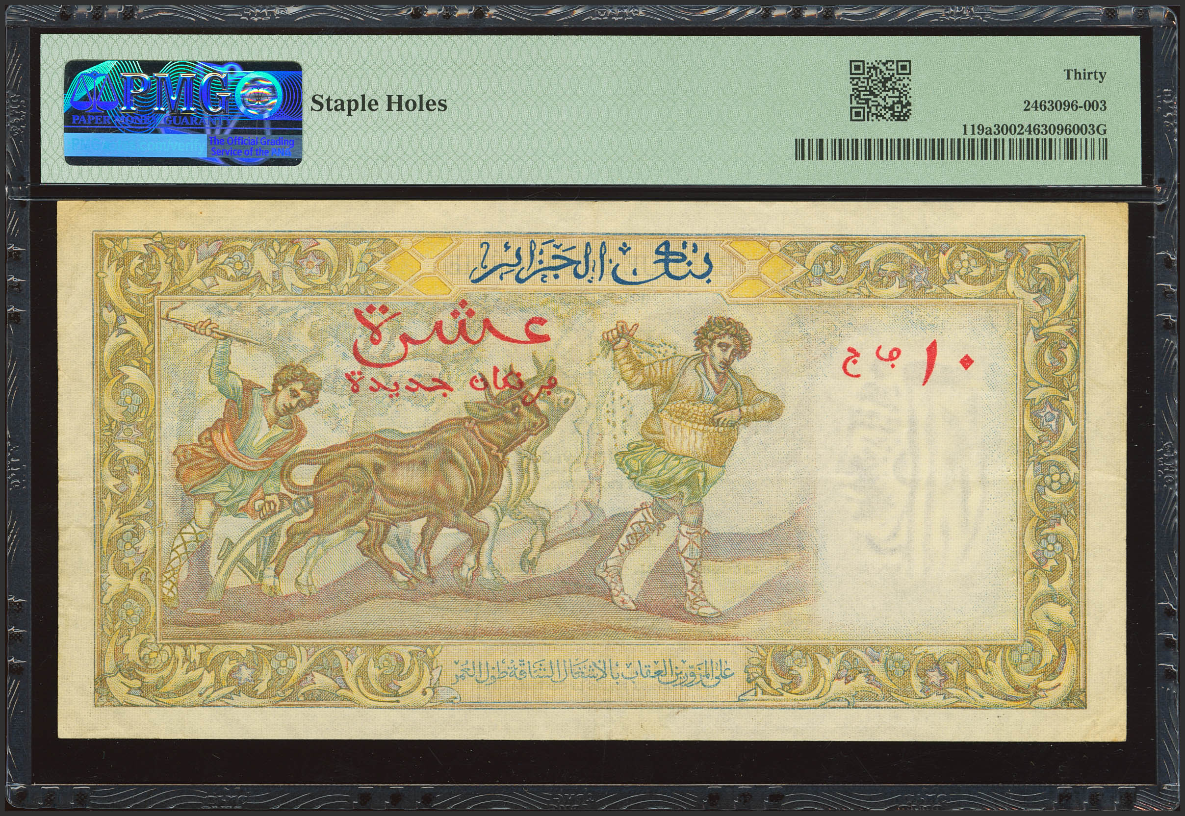 ALGERIA. 10 New French. 25 November 1960. Banque de l'Algerie. (Pick: 119a). PMG30 (staple holes).