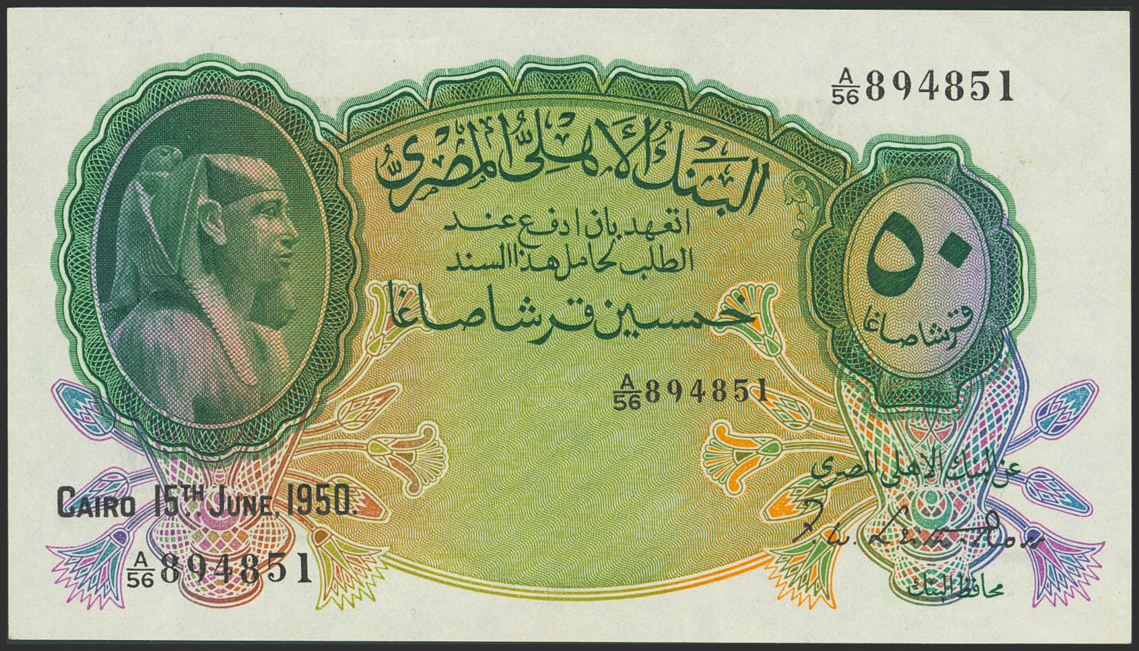 EGYPT. 50 Piastres. June 15, 1950. National Bank. Signature of Leith-Ross. (Pick: 21d). Almost Uncirculated.
