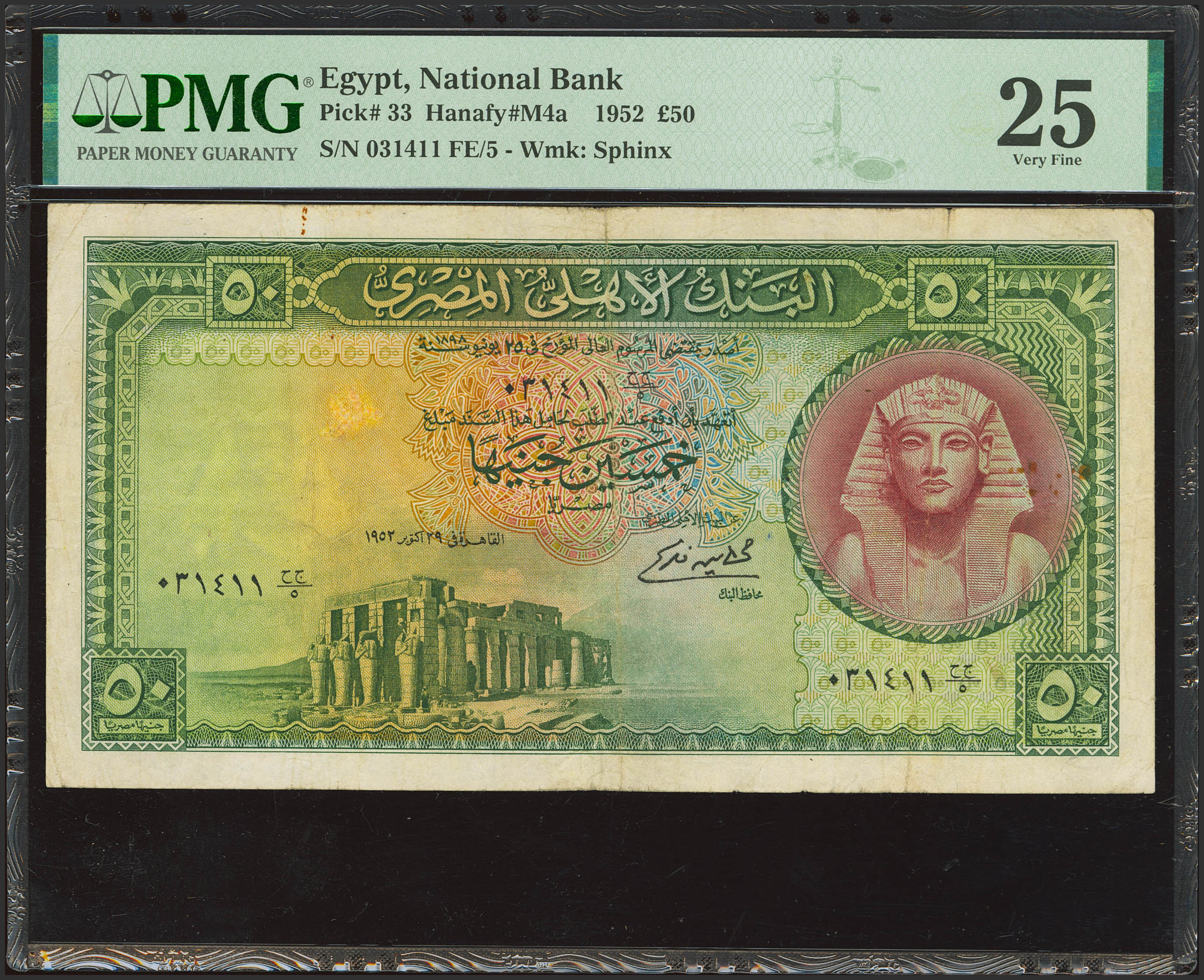 EGYPT. 50 Egyptian Pounds. 1952. National Bank. (Pick: 33). PMG25 (minor rust, splits).