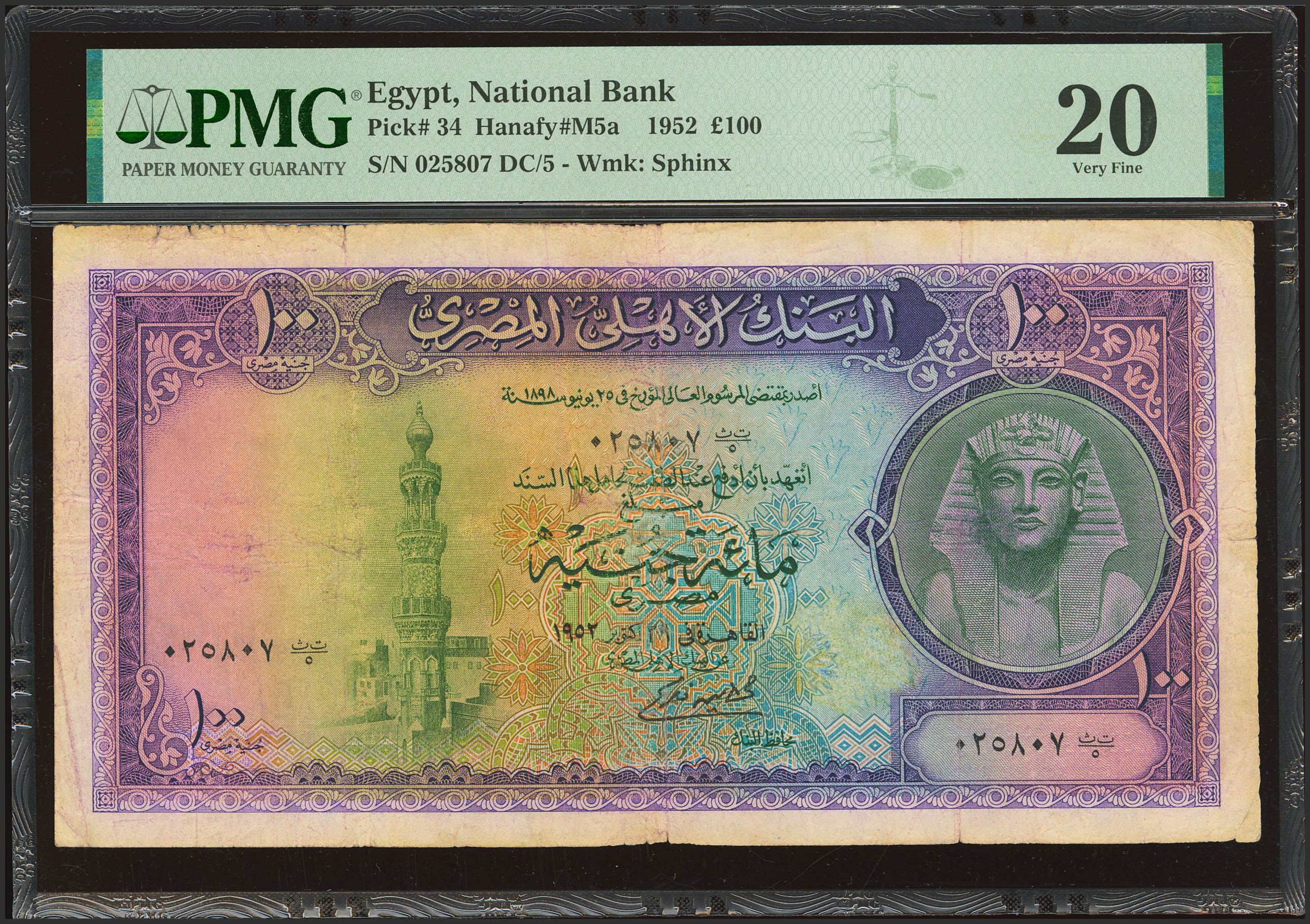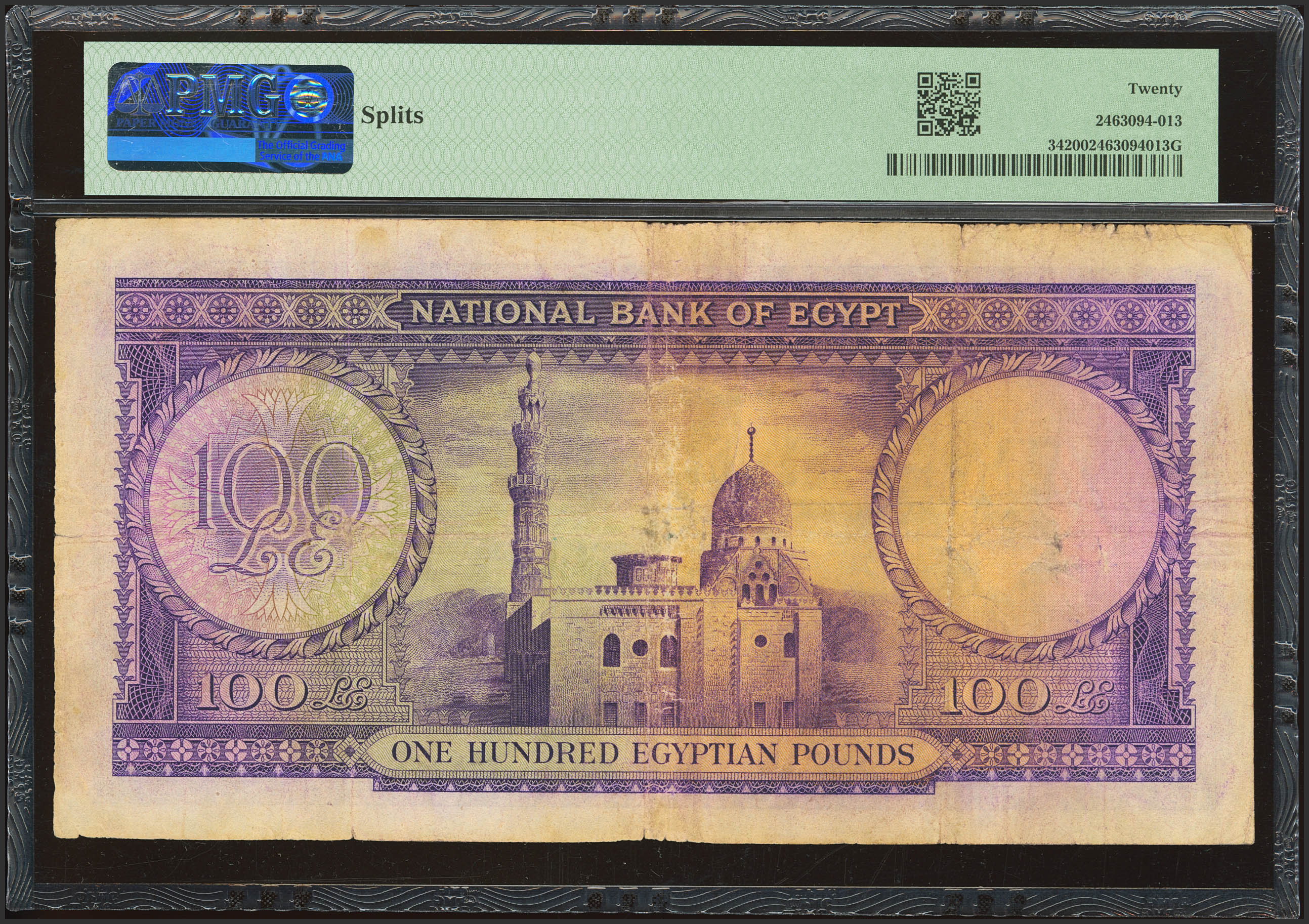 EGYPT. 100 Egyptian Pounds. 1952. National Bank. (Pick: 34). PMG20 (splits).
