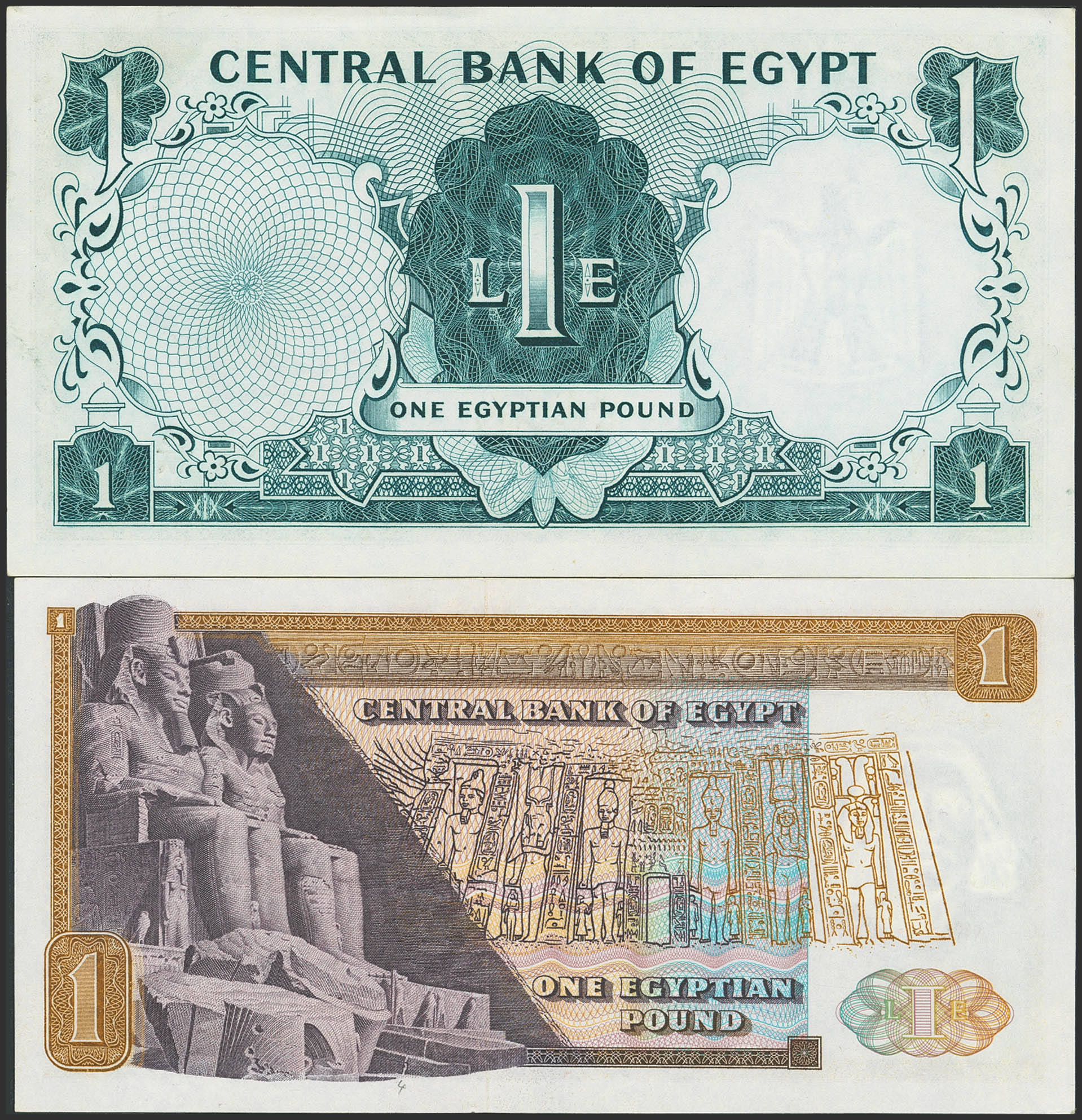 EGYPT. Lot of 2 notes of 1 Pound. 1961 and 1977. Central Bank. (Pick: 37a, 44c). Almost Uncirculated (p37) and Uncirculated.