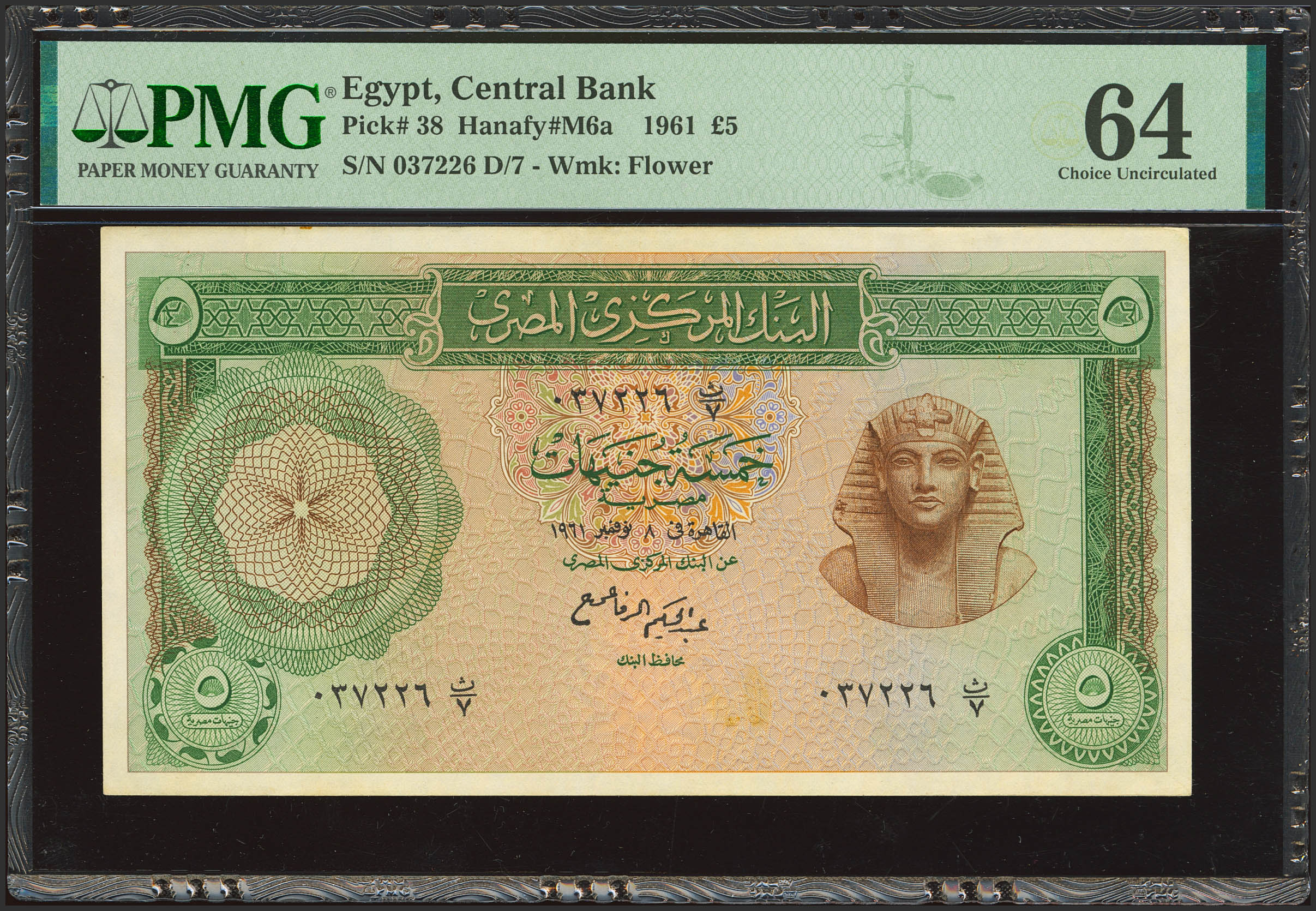 EGYPT. 5 Pounds. 1961. Central Bank. (Pick: 38). PMG64.